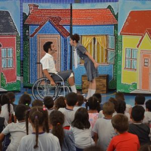 Cerca de 200 alunos assistiram ao espetáculo que aborda o tema da acessibilidade e propõe, de forma lúdica, a discussão da escola acessível. A ação se tornou possível através da Secretaria de Educação de Santo Antônio de Posse. Confira as fotos!