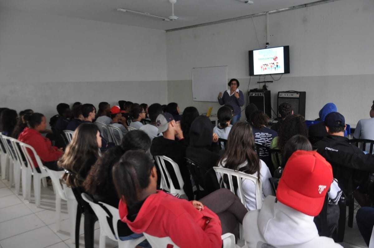 Na ação, a coordenadora da Vigilância Epidemiológica Márcia Simenton levou até os alunos imagens que retratam as mais diversas situações encontradas pelos agentes de controle de vetores nos terrenos e casas do município.