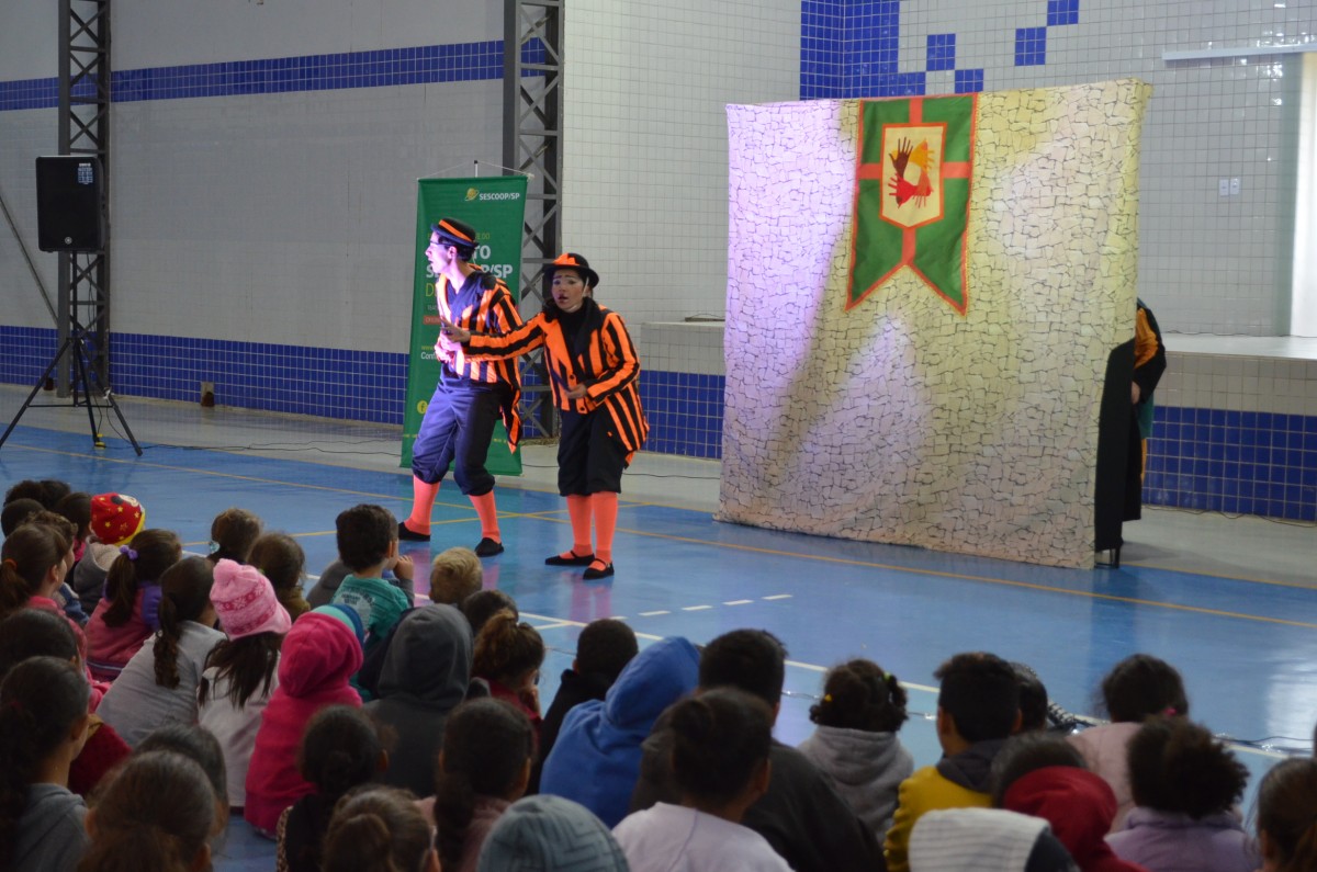 Apresentada nos períodos da manhã e tarde, cerca de 300 alunos puderam interagir, rir e aprender com a peça da Companhia Teatral “Arautos Cênicos”. O evento foi realizado na Quadra Poliesportiva do CIEF e compareceram as escolas EMEF e EJA Maria Vicençotti, EMEI Maria Carolina Vicenzotti Benedito e EMEI Beija-Flor.
