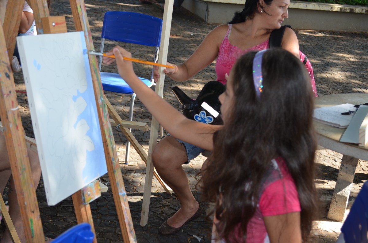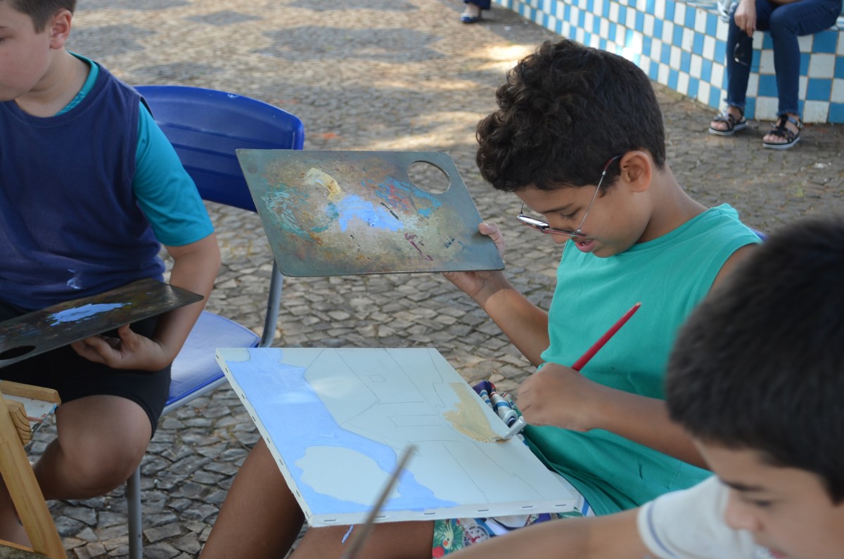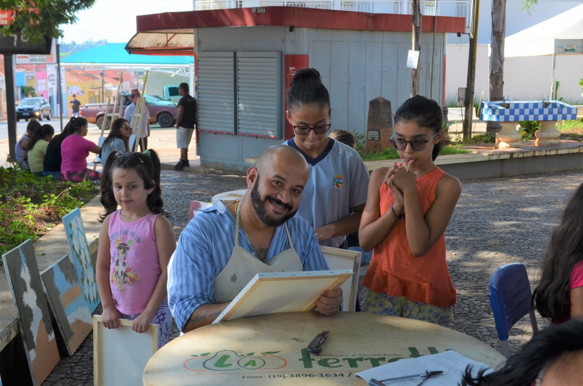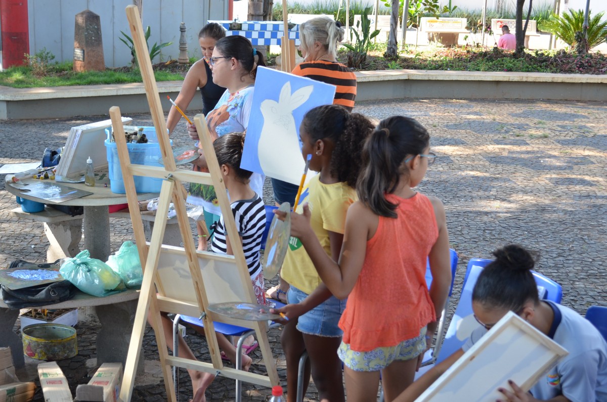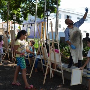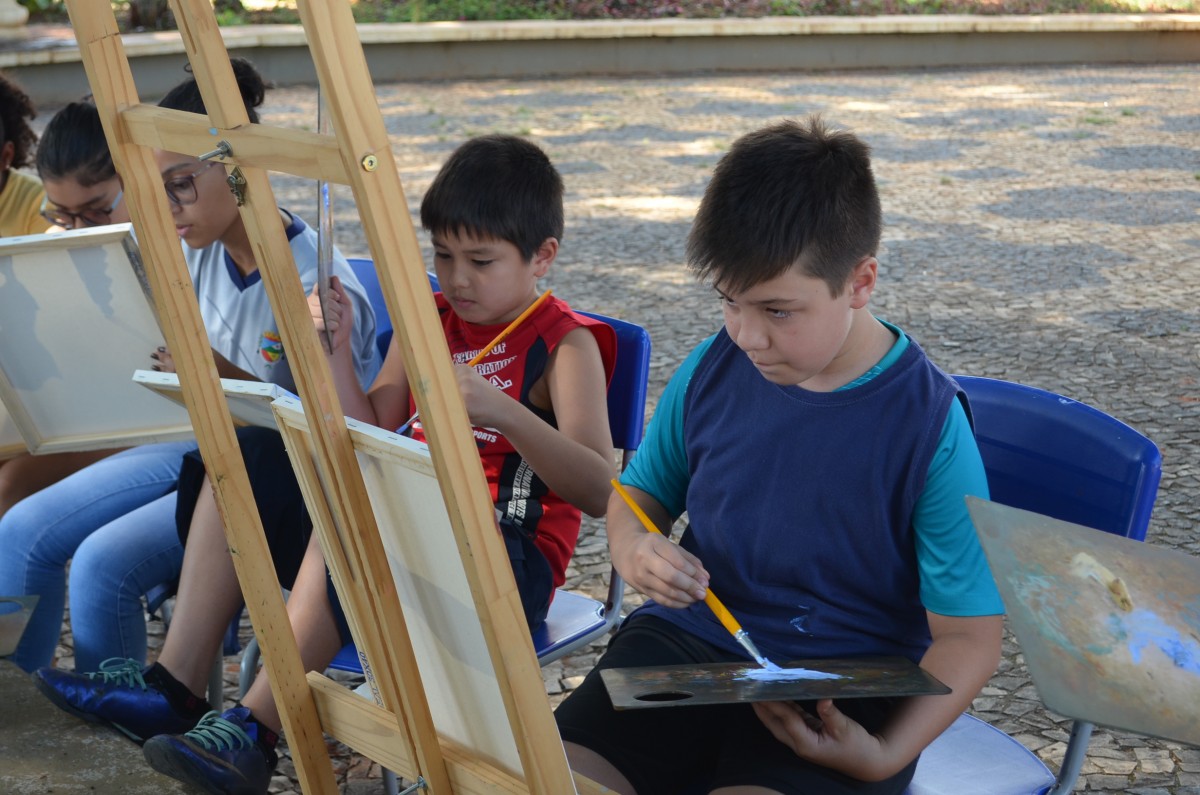 A Praça da Matriz foi palco para uma aula diferenciada nesta terça-feira, dia 26 de março. Os alunos do 4º ao 5º ano da EMEF Mario Bianchi participaram de uma aula de artes, ministrada pelo artista e professor Ever San Laurenzo, ao ar livre e puderam aprender e praticar a pintura em tela. As aulas acontecem todas as terças-feiras e as inscrições devem ser feitas na própria escola.