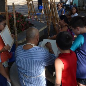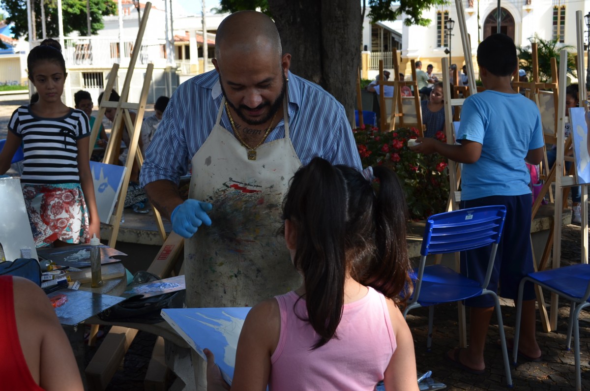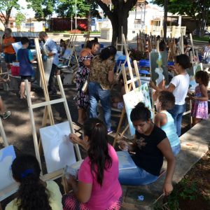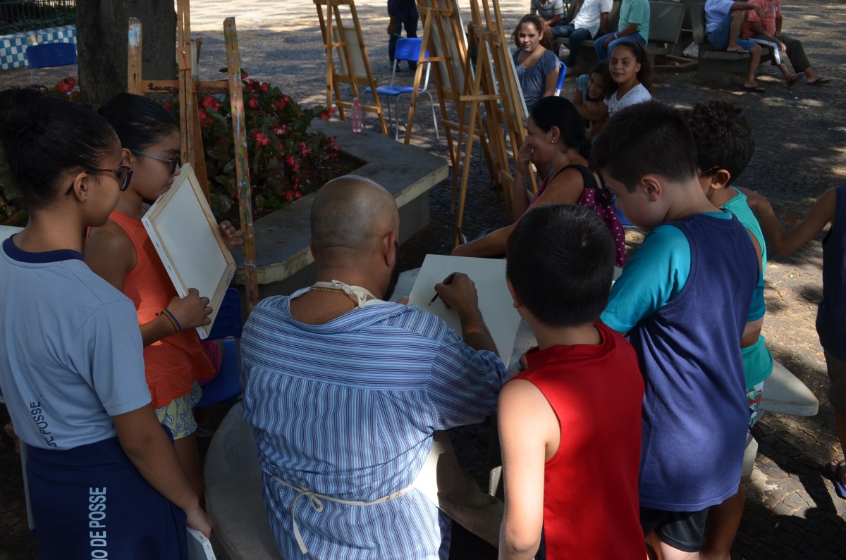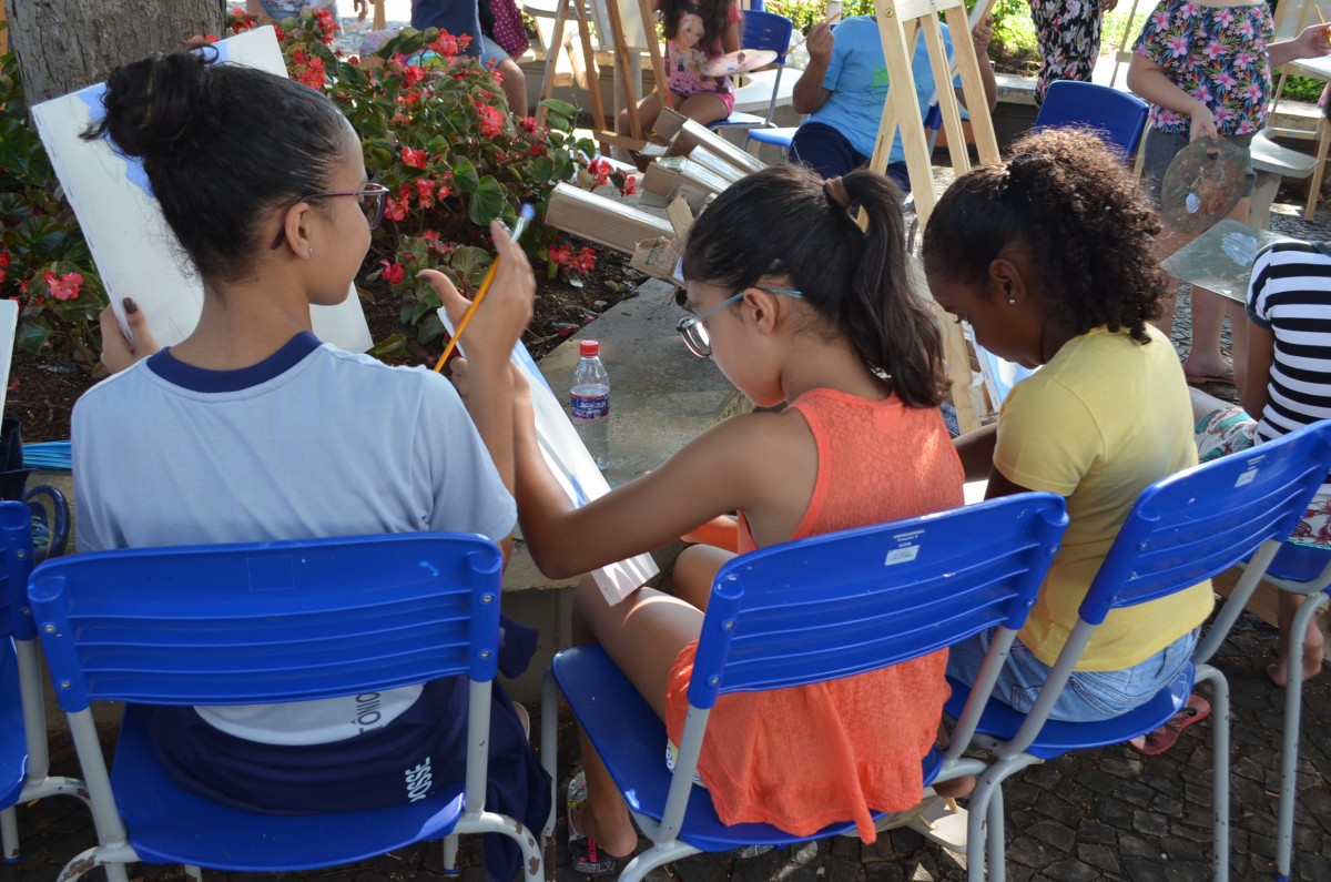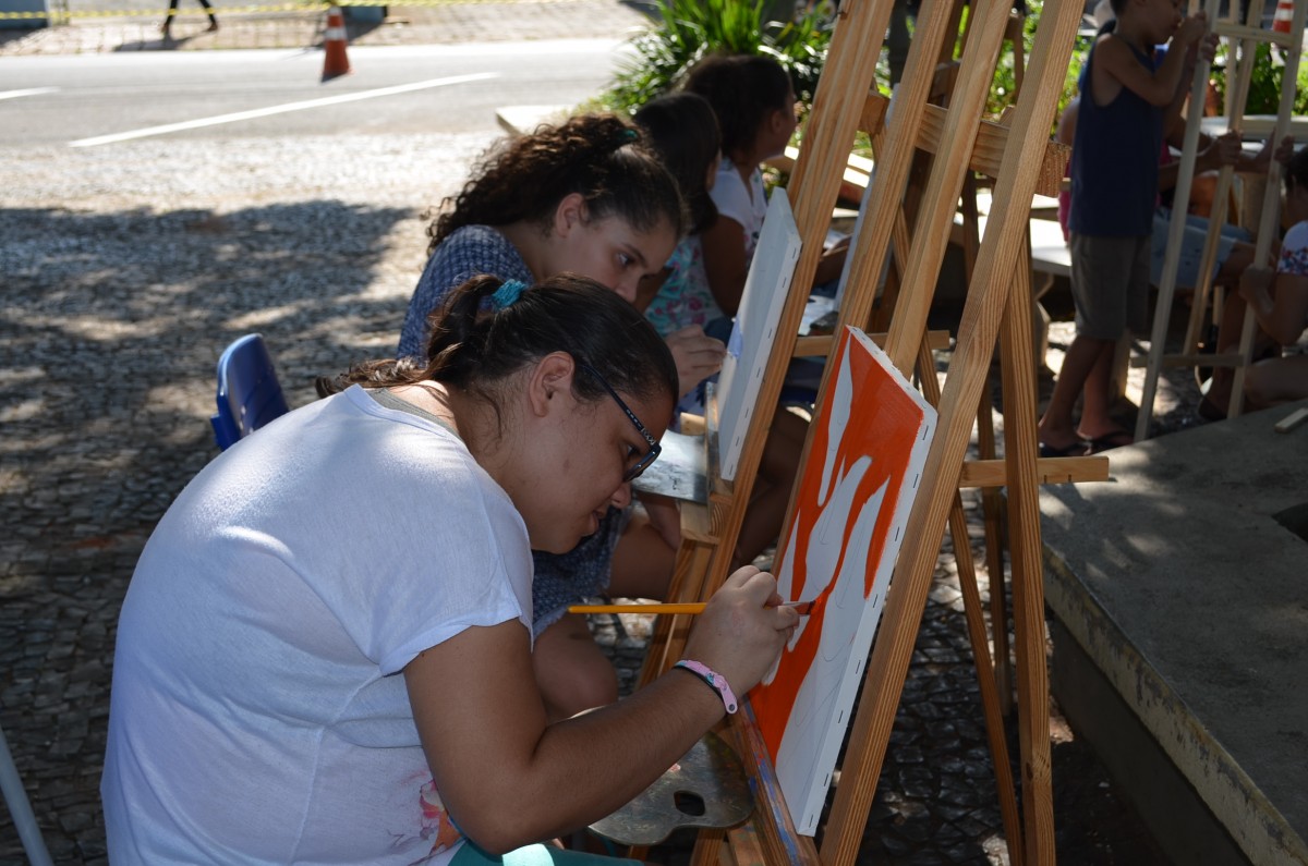 A Praça da Matriz foi palco para uma aula diferenciada nesta terça-feira, dia 26 de março. Os alunos do 4º ao 5º ano da EMEF Mario Bianchi participaram de uma aula de artes, ministrada pelo artista e professor Ever San Laurenzo, ao ar livre e puderam aprender e praticar a pintura em tela. As aulas acontecem todas as terças-feiras e as inscrições devem ser feitas na própria escola.