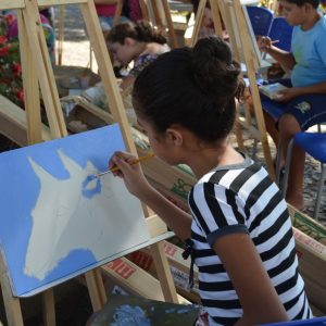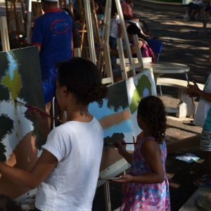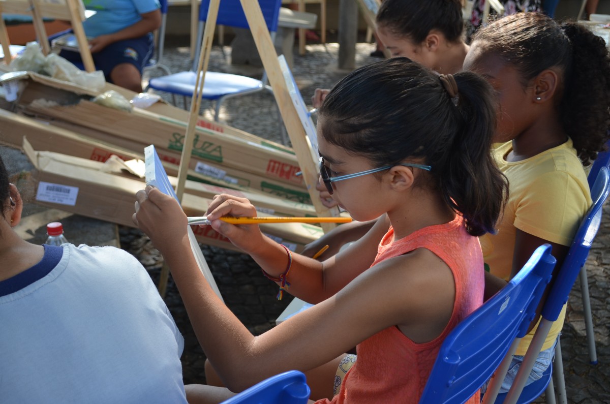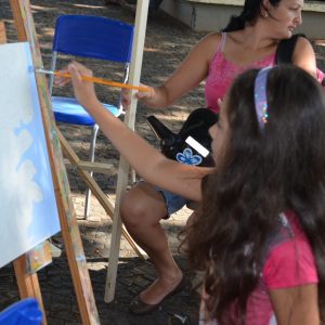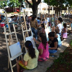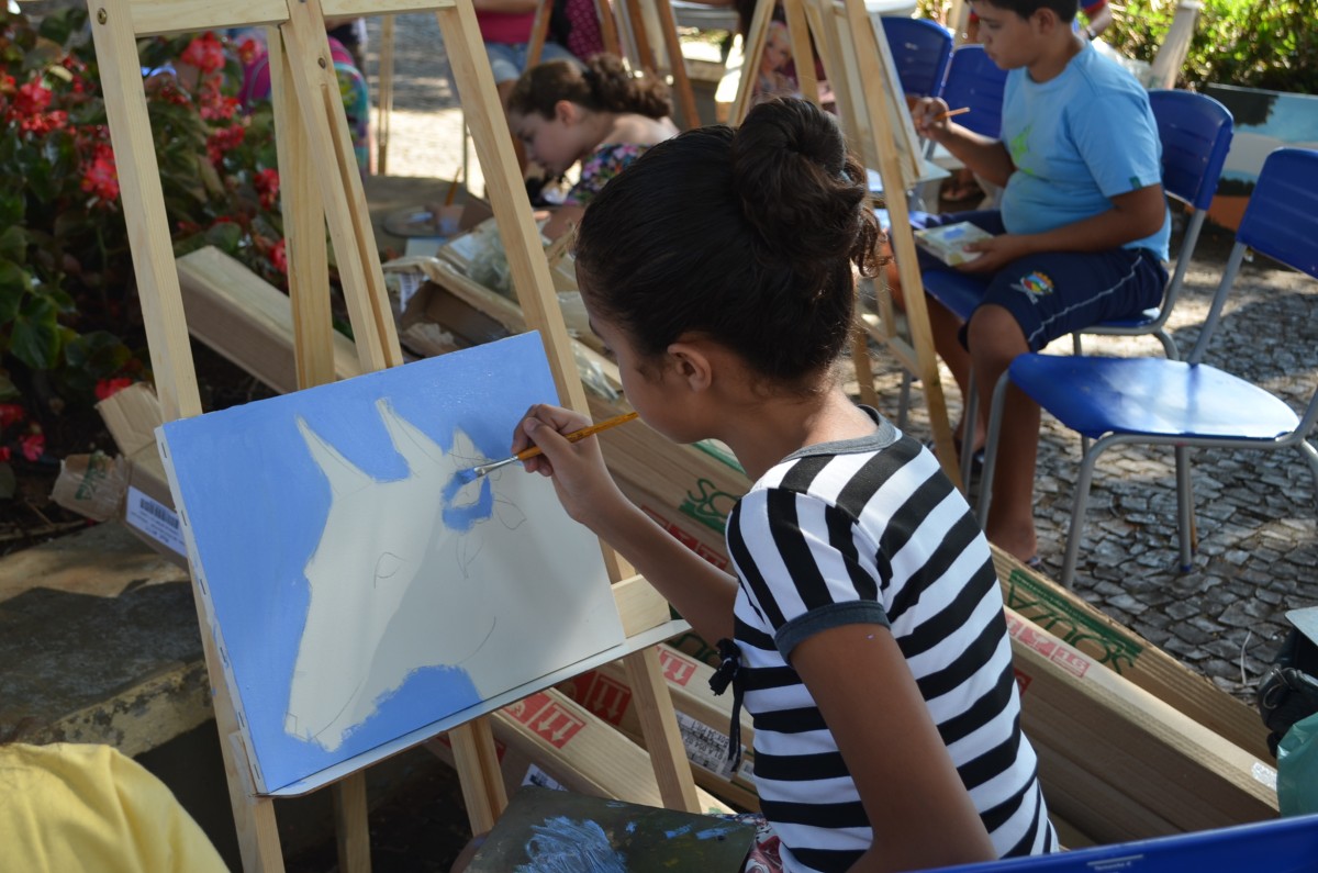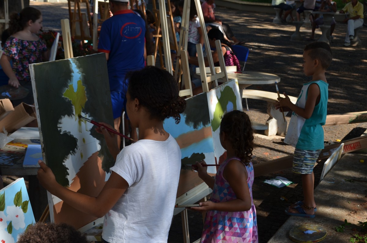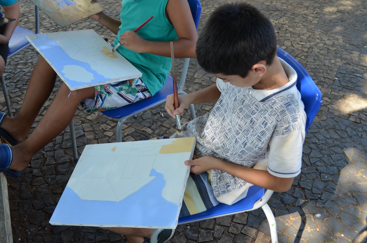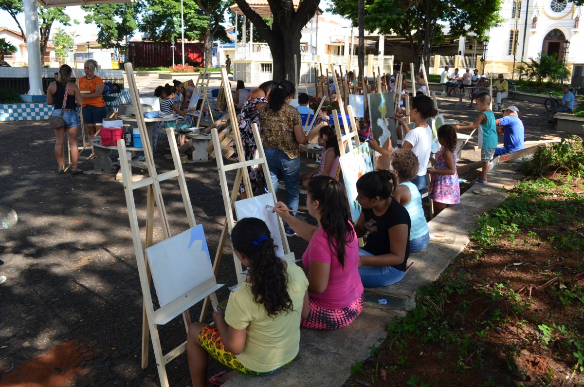 Cerca de 25 alunos estavam presentes na atividade que também contou com a participação de mães e pais que se dispuseram a ajudar na montagem dos cavaletes para apoio das telas. A atividade foi promovida pela Secretaria de Educação.
