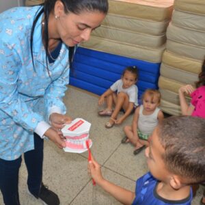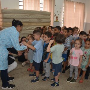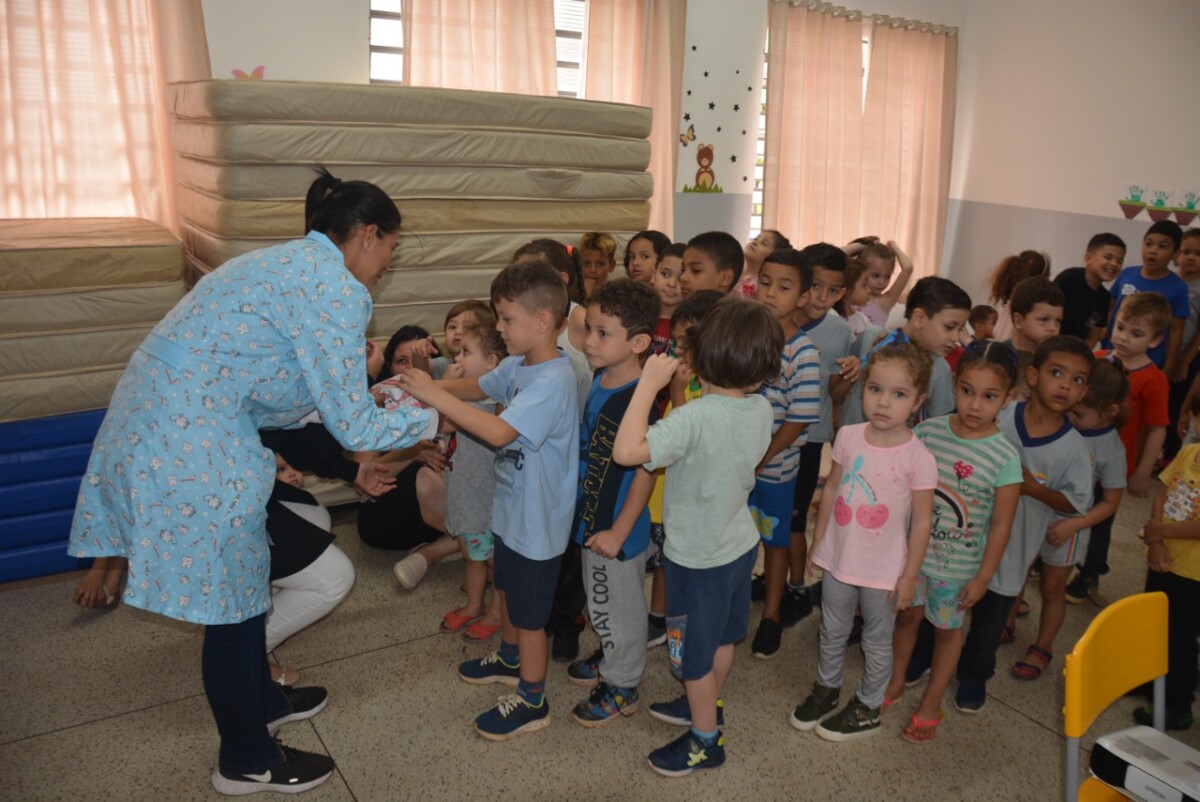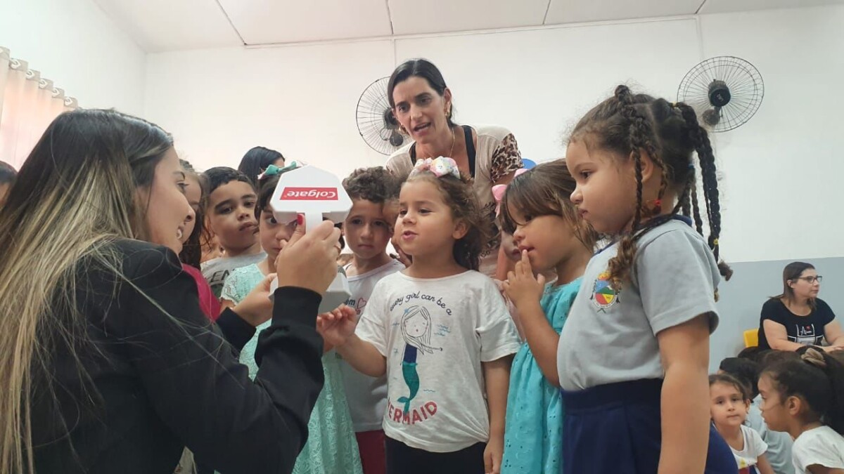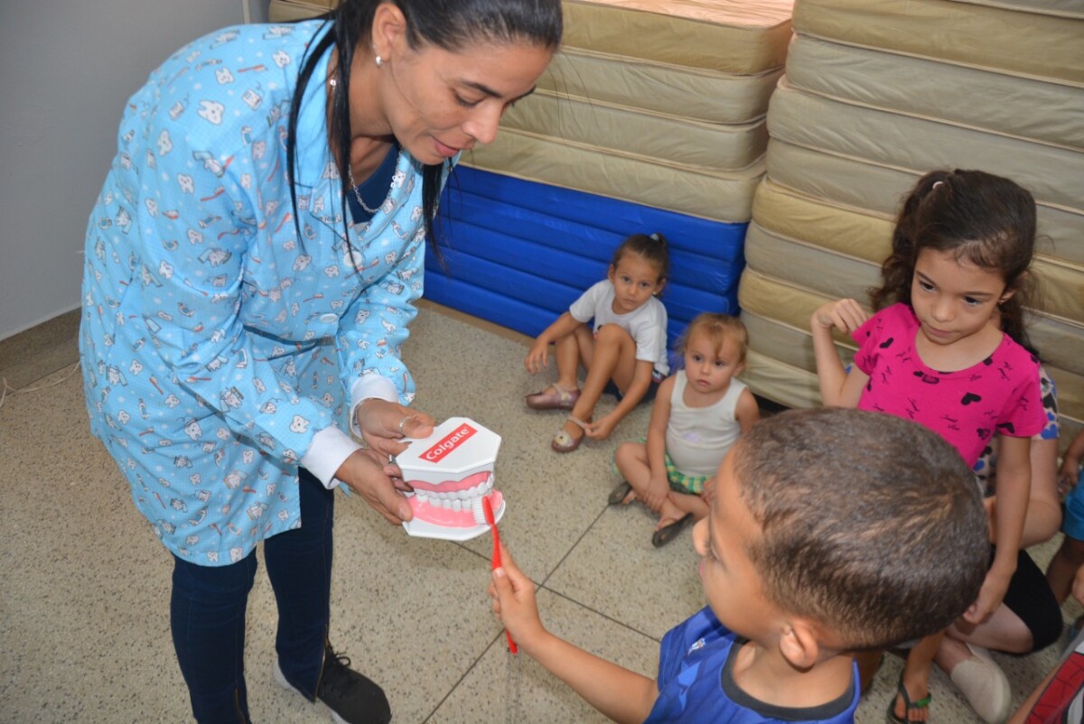 Para conscientizar o público infantil sobre a importância da higienização bucal, a Prefeitura Municipal, por meio da articulação dos profissionais da Secretaria da Saúde em conjunto com a Secretaria de Educação, promoveu palestras nas unidades escolares do município. Através de uma abordagem divertida e desenvolvida especialmente para crianças, os profissionais odontológicos da rede pública de saúde apresentaram estratégias de hábitos de higiene, reforçando sobre a importância das visitas regulares ao dentista.