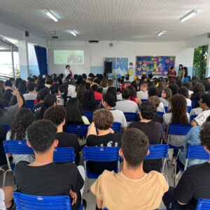 As palestras foram realizadas por meio do Programa Saúde na Escola (PSE), que visa à promoção e prevenção em saúde de maneira intersetorial junto às escolas