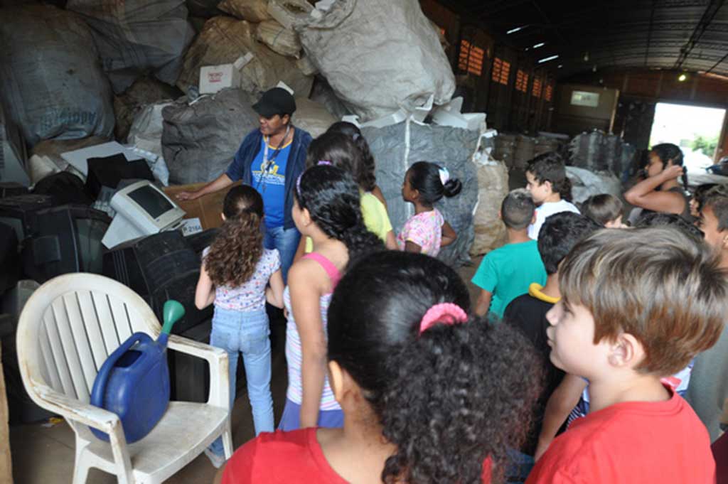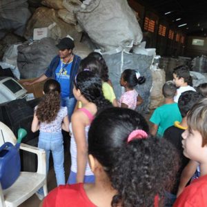 Ao todo, 28 alunos estiveram presentes na cooperativa, juntamente da professora Amanda, e puderam aprender mais sobre a separação do lixo e como ele é processado.