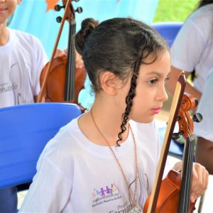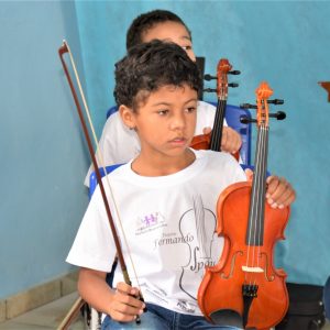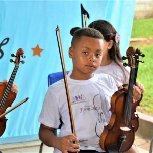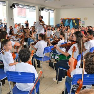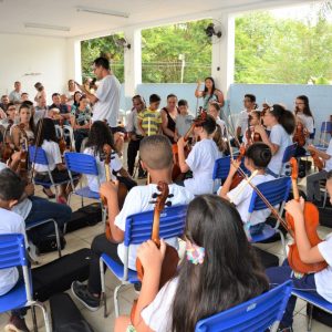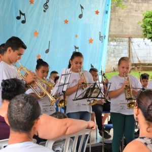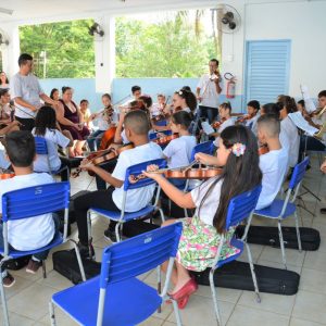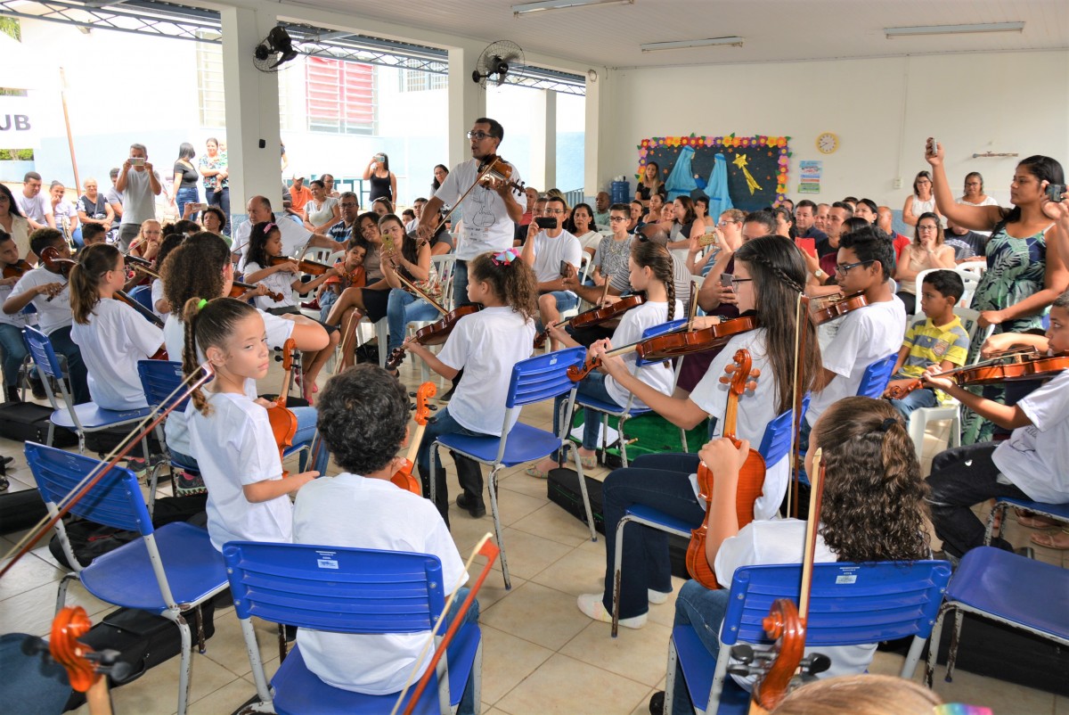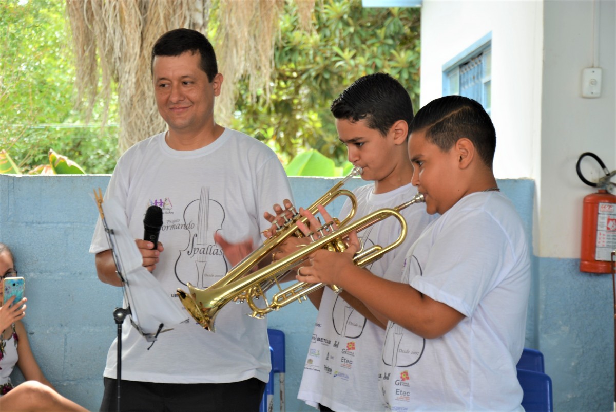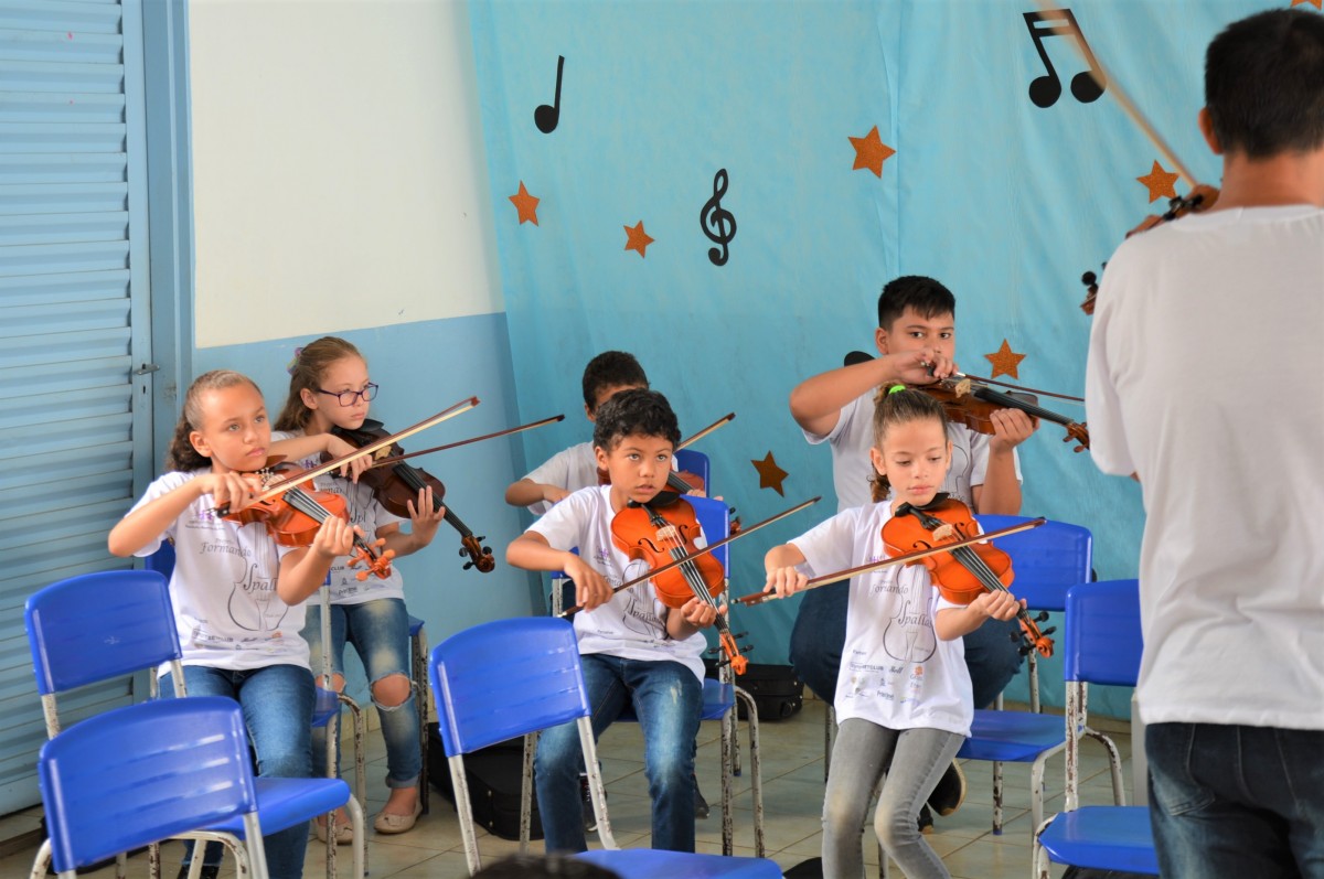 No município, o projeto atende cerca de 50 alunos, divididos em dois cursos: Cordas (violino, viola clássica e violoncelo) e Sopros (trompete, flugelhorn e trompa de marcha).