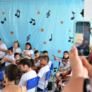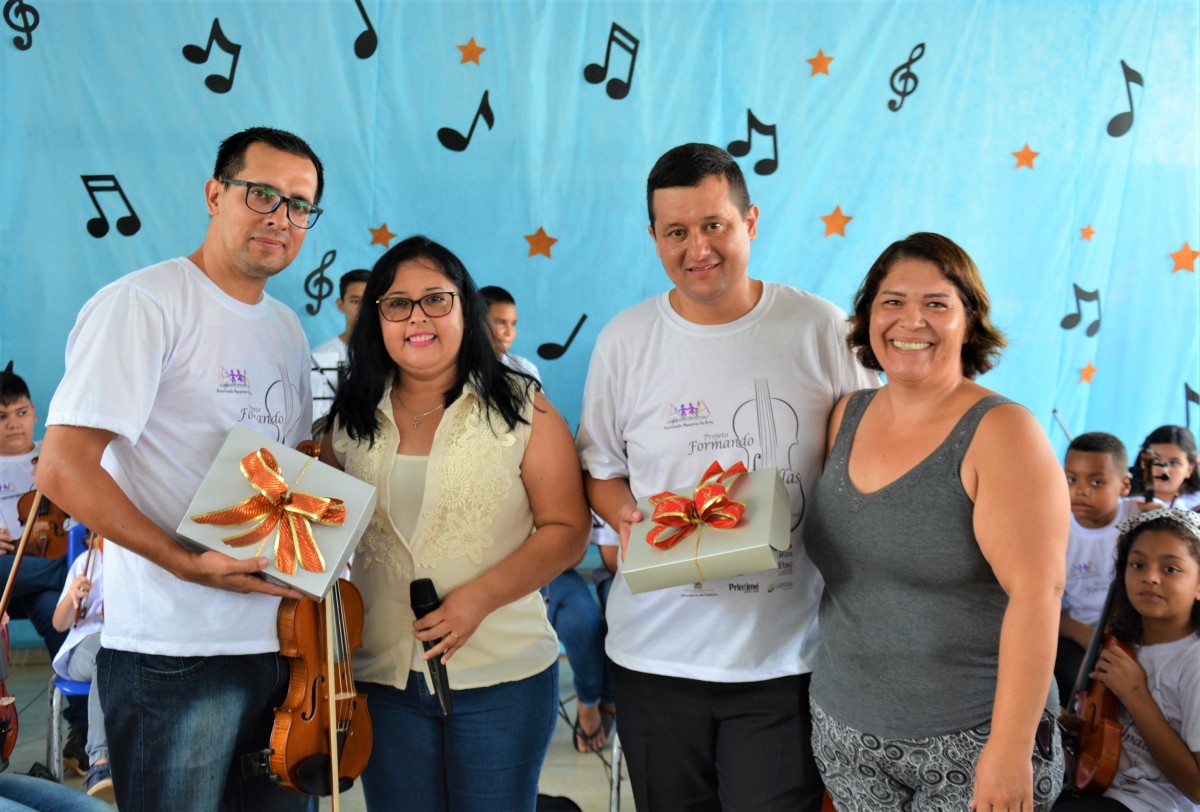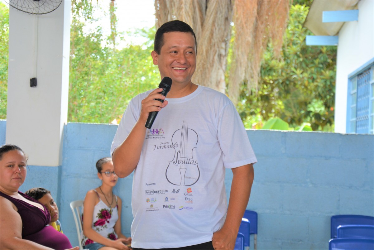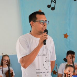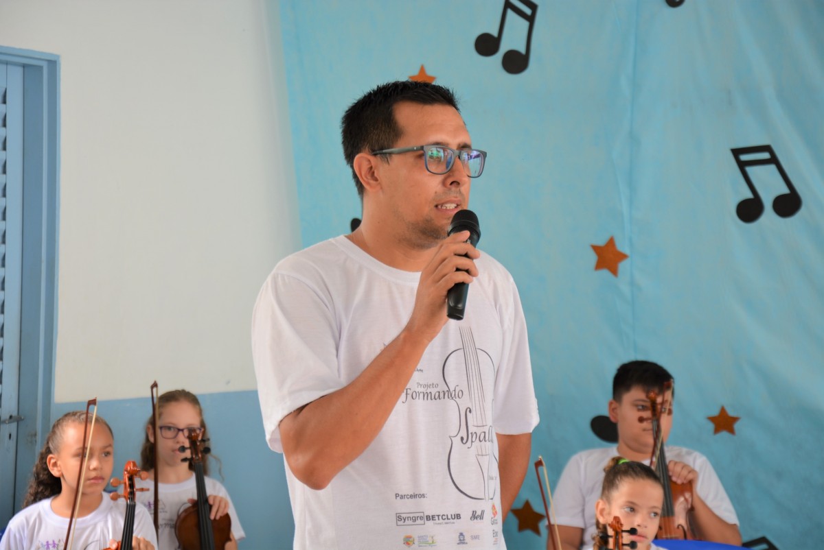 Quem comandou a apresentação foi o maestro, professor de cordas e fundador do projeto, Jonathan Santos que, juntamente do professor de sopro, Tiago Graça, prepararam diversas apresentações musicais para os presentes.
