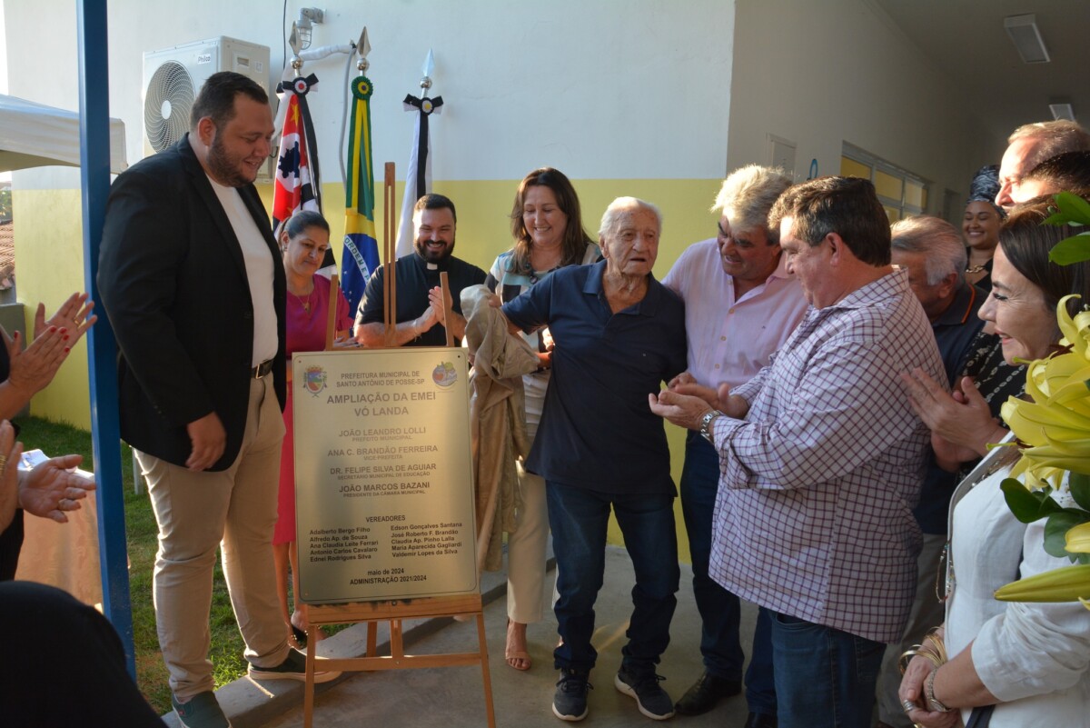 A Prefeitura de Santo Antônio de Posse, por meio da Secretaria Municipal de Educação, celebrou nesta segunda-feira, 6 de maio, a entrega das obras de ampliação da Escola Municipal de Educação Infantil – EMEI “Vó Landa”. A unidade de ensino, localizada no bairro Vila Esperança, passa a contar com 4 novas salas para atender 80 crianças do berçário ao maternal. A cerimônia contou com a presença de autoridades do município e familiares da homenageada.