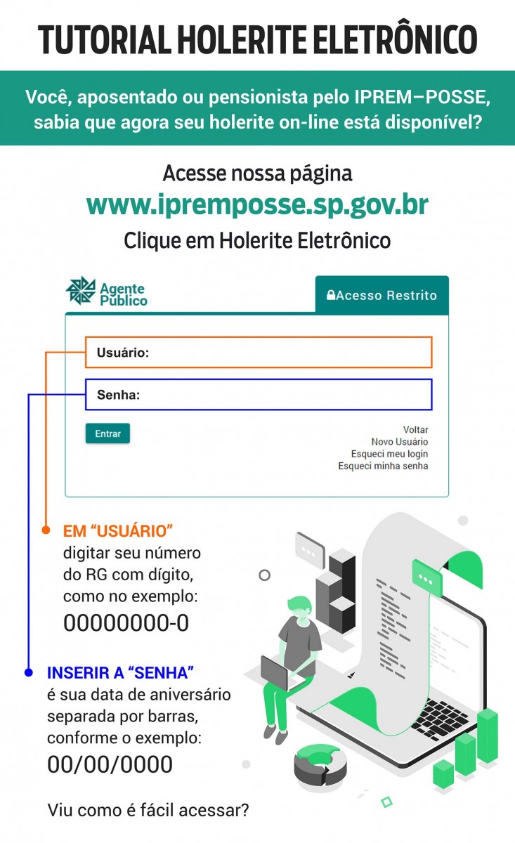 Para facilitar o acesso dos aposentados e pensionistas ao seu holerite, o Instituto de Previdência Municipal de Santo Antônio de Posse (IPREM-POSSE) criou uma ferramenta que disponibiliza o documento de forma online, chamada “Holerite Eletrônico”.
