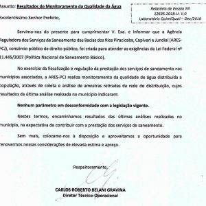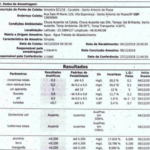 A última coleta de amostras, captadas diretamente de pontos de recebimento e de diferentes locais do município, comprovou a qualidade da água distribuída aos possenses, através dos Relatório de Ensaio nº 12635, de 4 de dezembro de 2018.