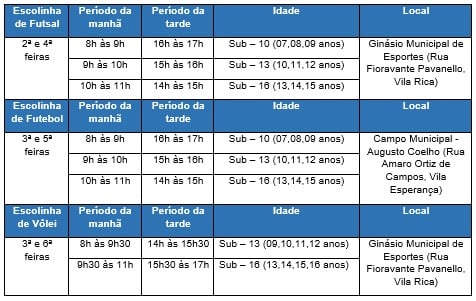 A Prefeitura Municipal de Santo Antônio de Posse, através da Diretoria de Esportes e Lazer, informa que as aulas das escolinhas de Futsal, Futebol e Vôlei retornam nesta segunda-feira, dia 28 de janeiro. Atualmente, aproximadamente 250 alunos participam das aulas oferecidas pelo departamento em parceria com a Secretaria de Educação.