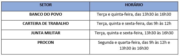 Banco do Povo, Carteira do Trabalho, PROCON e Junta Militar funcionam em novo horário
