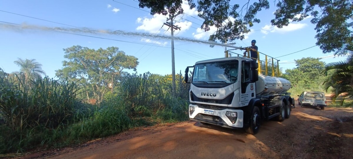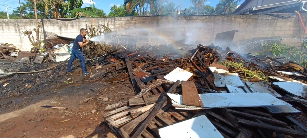 Após serem acionados, os agentes trabalharam na contenção das chamas com o uso do caminhão pipa.