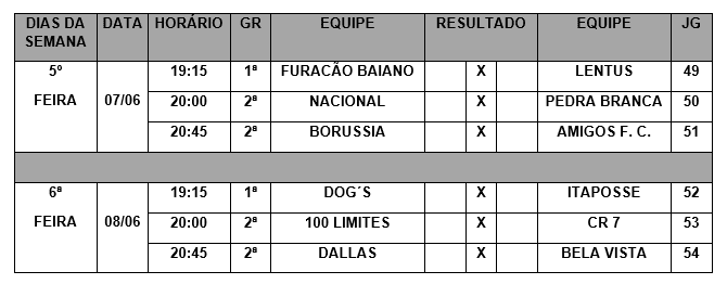 Confira a tabela de jogos até o fechamento da próxima edição do Jornal Oficial.