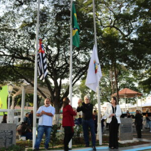Aconteceu na manhã desta segunda-feira, 13, a tradicional cerimônia de hasteamento das bandeiras em comemoração aos 67 anos de emancipação político-administrativa de Santo Antônio de Posse. A solenidade foi realizada na Praça da Matriz e contou com a participação do Prefeito João Leandro Lolli, da Vice-Prefeita Ana Brandão, da primeira-dama e presidente do Fundo Social de Solidariedade, Ana Lima, do presidente da Câmara em exercício, Edson Gonçalves Santana, dos vereadores João Felix e Claudia Pinho Lalla, o padre Carlos Roberto Panassolo, entre outras autoridades, além da participação da população.