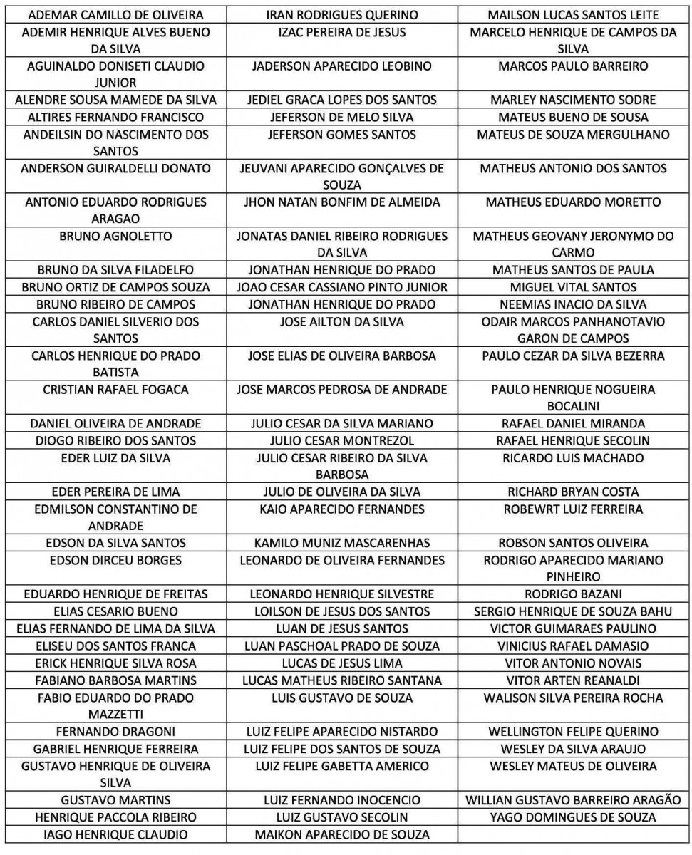 Abaixo, a relação com os nomes daqueles que necessitam retirar o Certificado de Dispensa de Incorporação Militar: