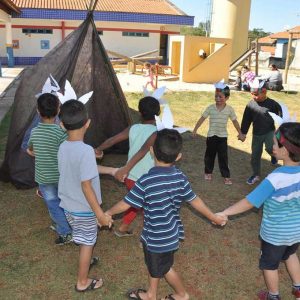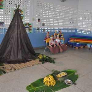 Na quinta-feira foram realizadas atividades em comemoração ao Dia do Índio nas creches do município. Os alunos fizeram cocares, pintaram o rosto e foram brincar nas ocas. Além disso, a atividade contou com músicas e comidas relacionadas à cultura indígena.