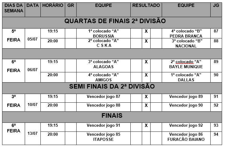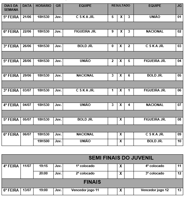 Confira a tabela de jogos até o fechamento da próxima edição do Jornal Oficial.