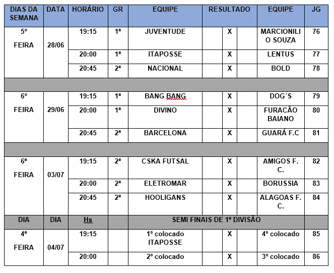Confira a tabela de jogos até o fechamento da próxima edição do Jornal Oficial.