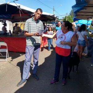 Os profissionais da Vigilância Epidemiológica também participaram da ação e distribuíram panfletos na Feira Livre e pelas ruas do município com informações importantes sobre prevenção.