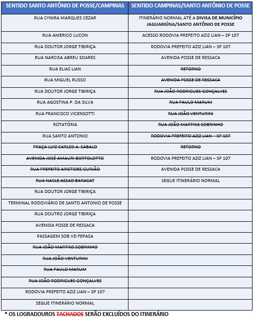 A Empresa Metropolitana de Transportes Urbanos de São Paulo – EMTU, anunciou a retirada de pontos do itinerário da linha 618TRO Santo Antônio de Posse – Campinas, via Jaguariúna. A medida se fez necessária após um estudo que objetivou a regularização do itinerário realizado no município.