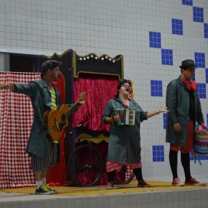 Na sexta-feira, dia 21 de fevereiro, dezoito turmas do Ensino Infantil se divertiram com a apresentação do espetáculo “Buraco da Minhoca”, apresentado pela trupe Tríade Teatral, Produções Artísticas. O objetivo da atração é conscientizar e informar através da linguagem do palhaço.
