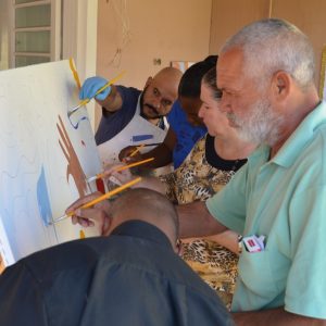 A festa, realizada na sede do CAPS, contou com oficina de música, e um trabalho criativo conjunto, onde os pacientes pintaram juntos um quadro em comemoração aos 10 anos. Além disso, foi realizada uma exposição dos produtos elaborados pelos pacientes no decorrer das oficinas cotidianas e um varal fotográfico foi produzido para rememorar os momentos da equipe e pacientes nos últimos anos. Para finalizar a festa, teve bolo e parabéns!
