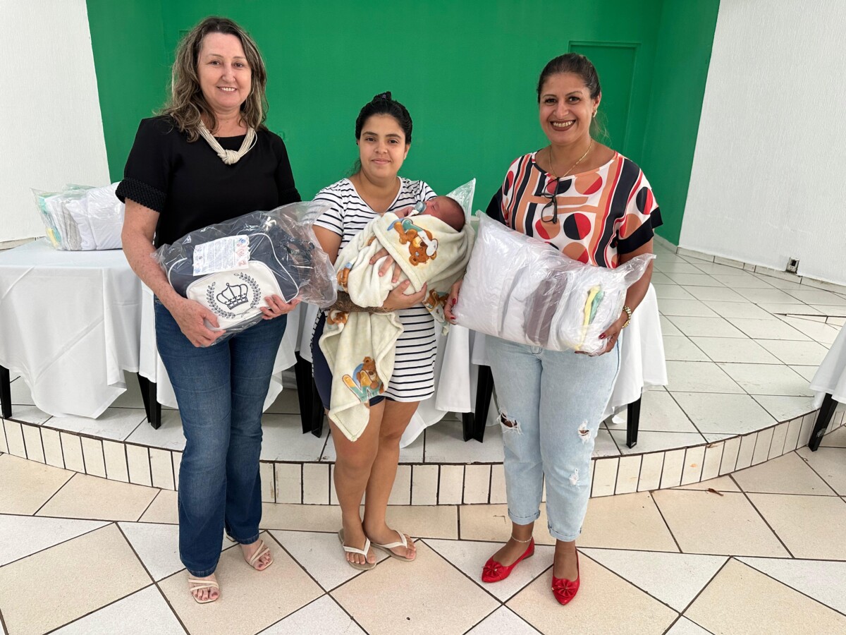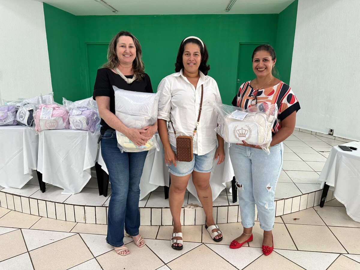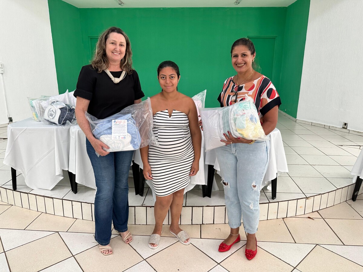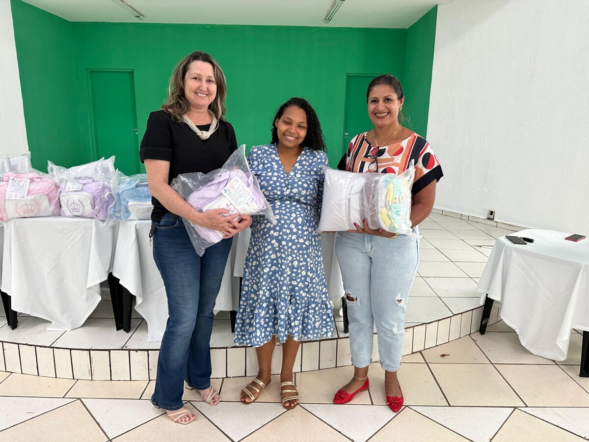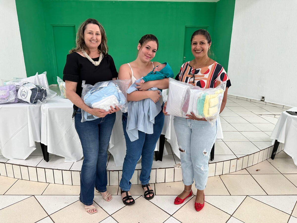 A Prefeitura Municipal, por meio da Secretaria de Saúde, Secretaria de Desenvolvimento Social e Fundo Social de Solidariedade, realizou na última quinta-feira, 25 de janeiro, no Centro Múltiplo do Idoso, a entrega de 15 kits de enxoval para as participantes do Grupo de Gestantes da edição do segundo semestre de 2023. Cada kit contém itens essenciais para os primeiros meses do bebê, tais como roupinhas para o recém-nascido, toalhinha de banho e fraldas.