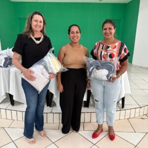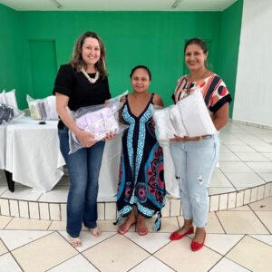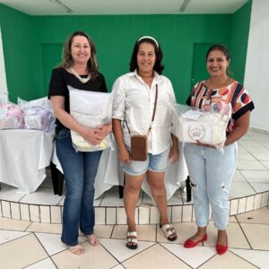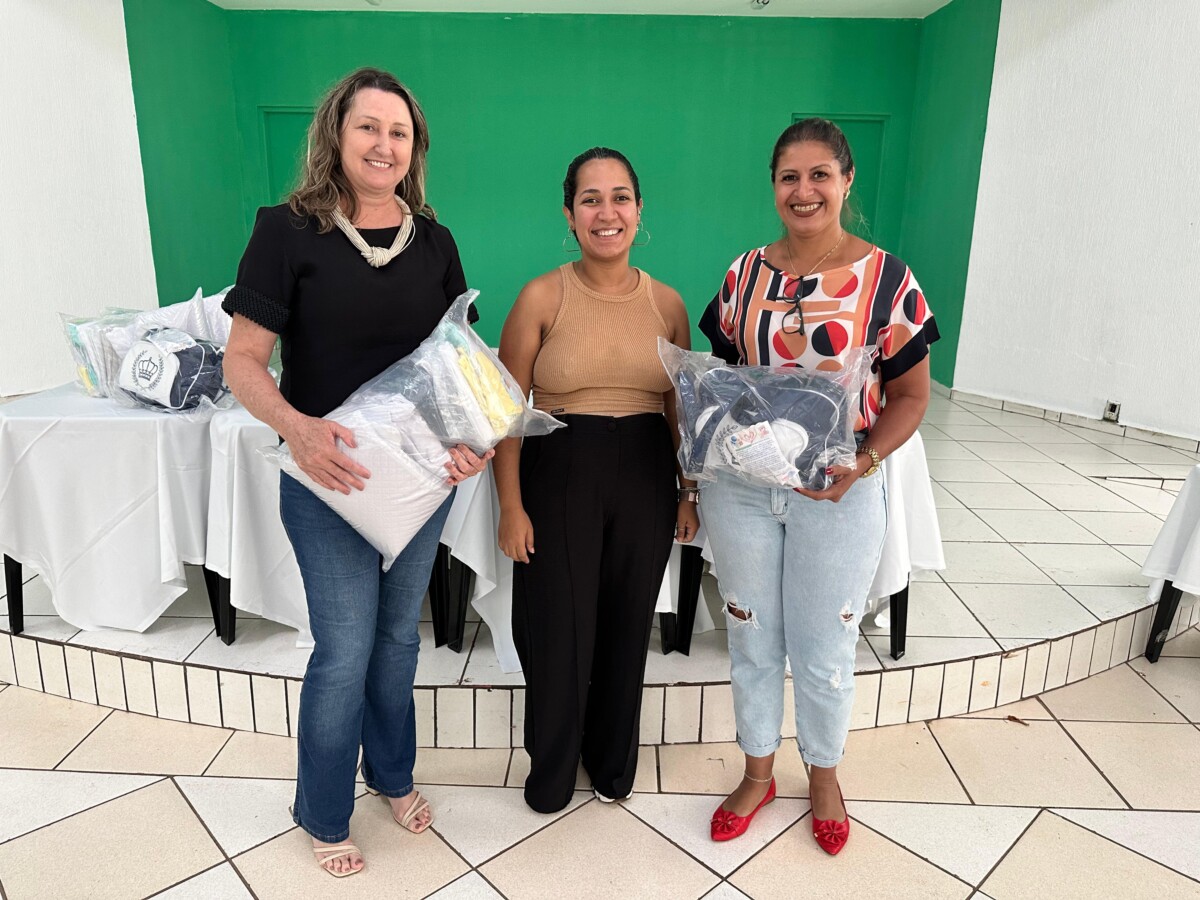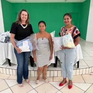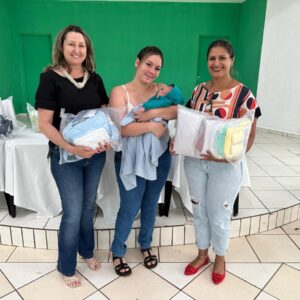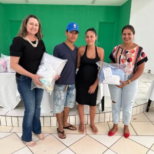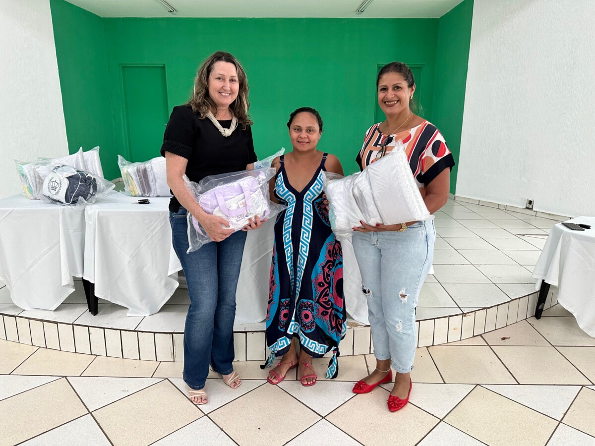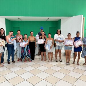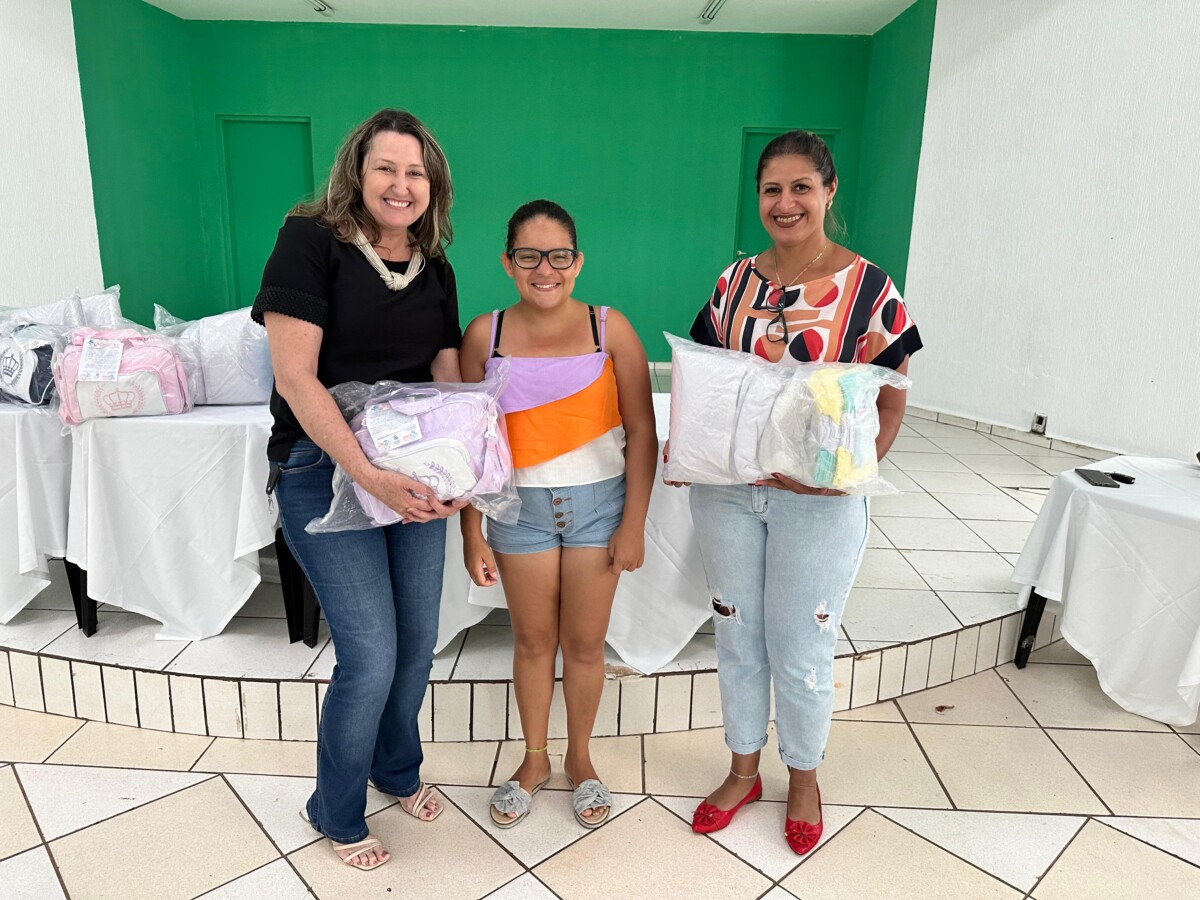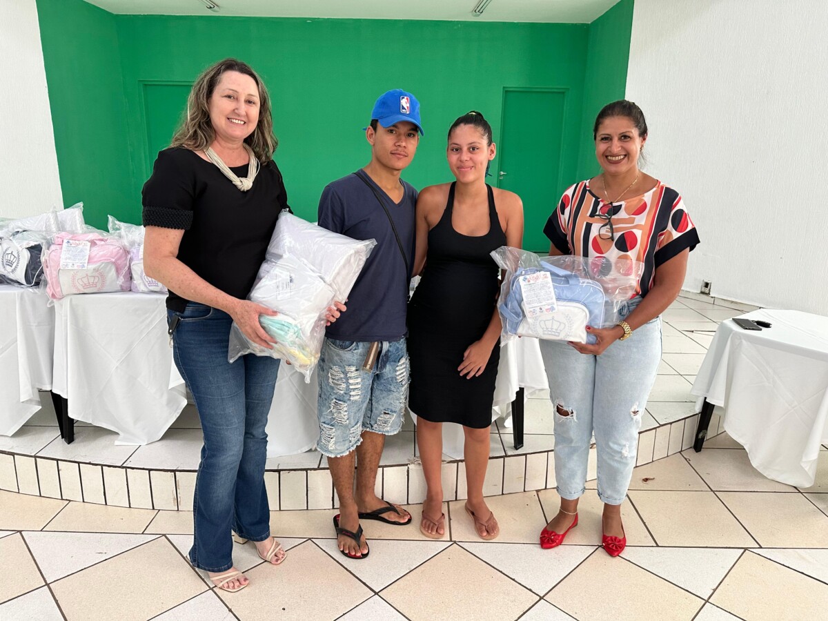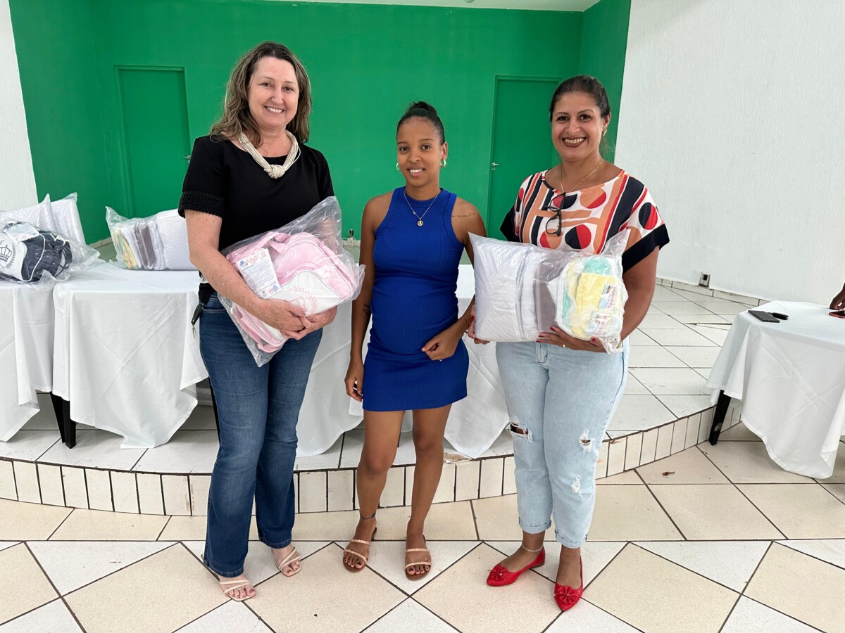 A Prefeitura Municipal, por meio da Secretaria de Saúde, Secretaria de Desenvolvimento Social e Fundo Social de Solidariedade, realizou na última quinta-feira, 25 de janeiro, no Centro Múltiplo do Idoso, a entrega de 15 kits de enxoval para as participantes do Grupo de Gestantes da edição do segundo semestre de 2023. Cada kit contém itens essenciais para os primeiros meses do bebê, tais como roupinhas para o recém-nascido, toalhinha de banho e fraldas.
