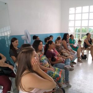 Como de costume, as gestantes participaram de uma conversa com um profissional da área de saúde. Desta vez, o tema discutido foi o Aleitamento Materno, assim como sua importância, a composição do leite materno, como amamentar o bebê e orientações sobre a amamentação.