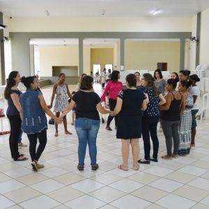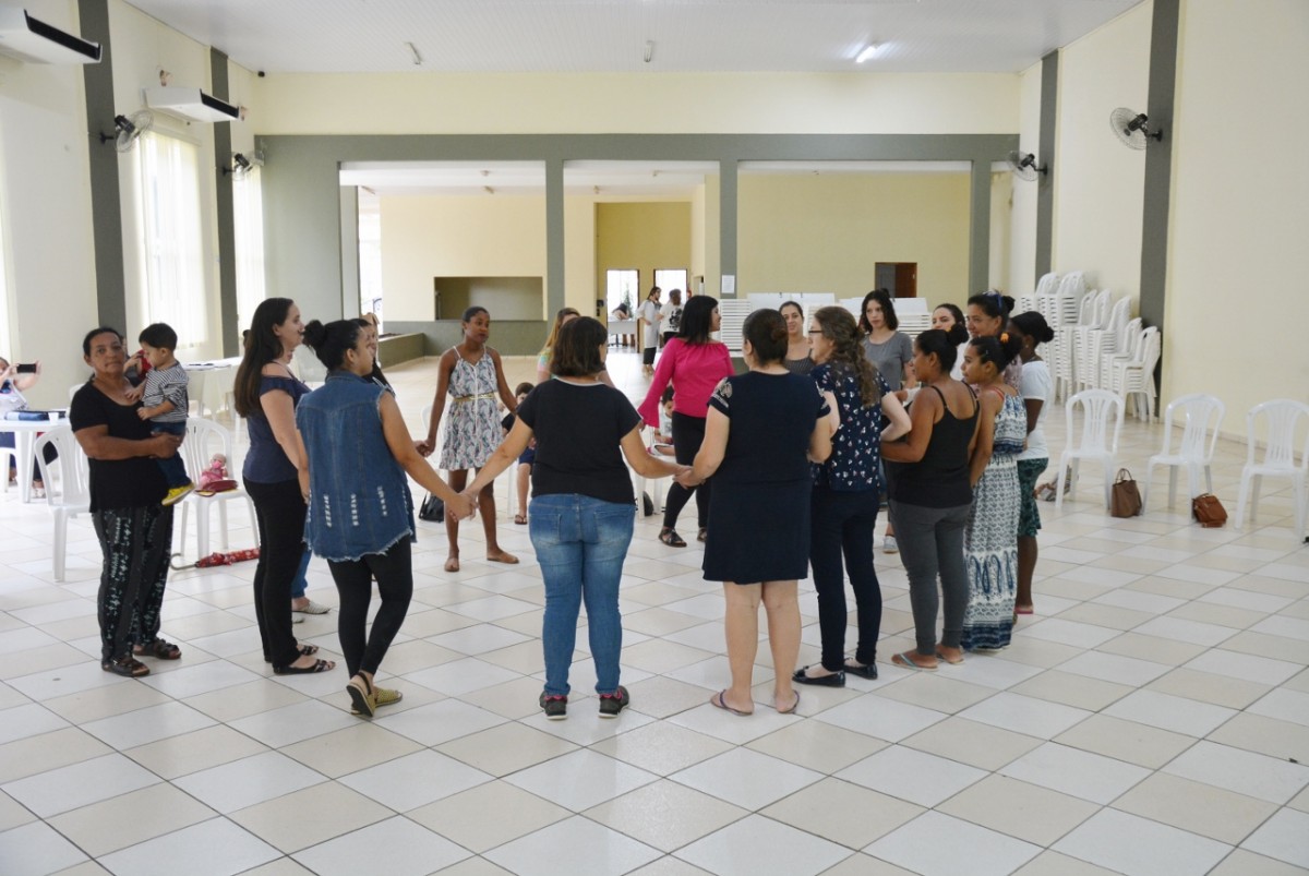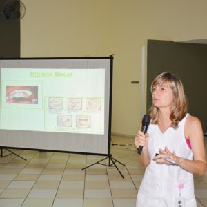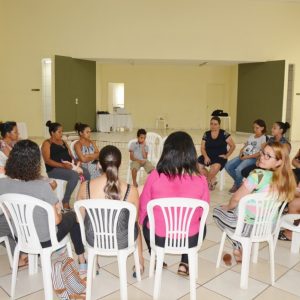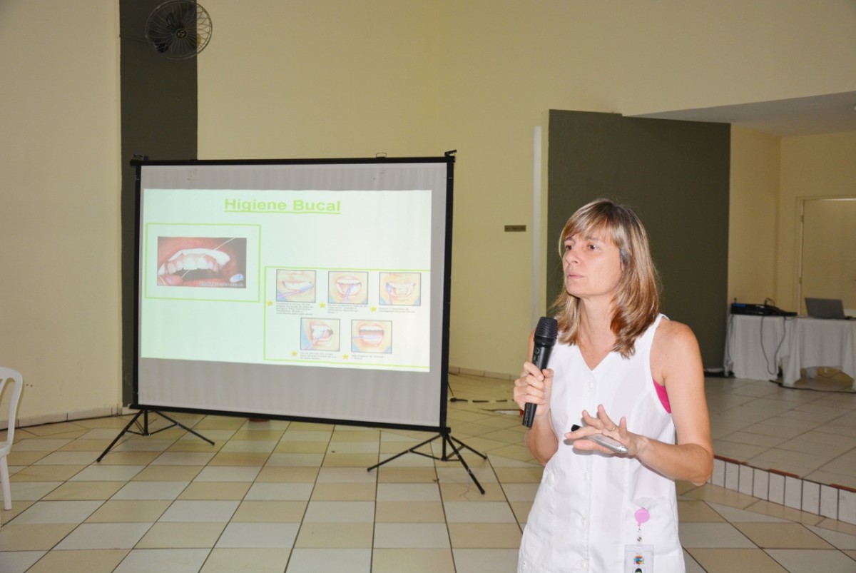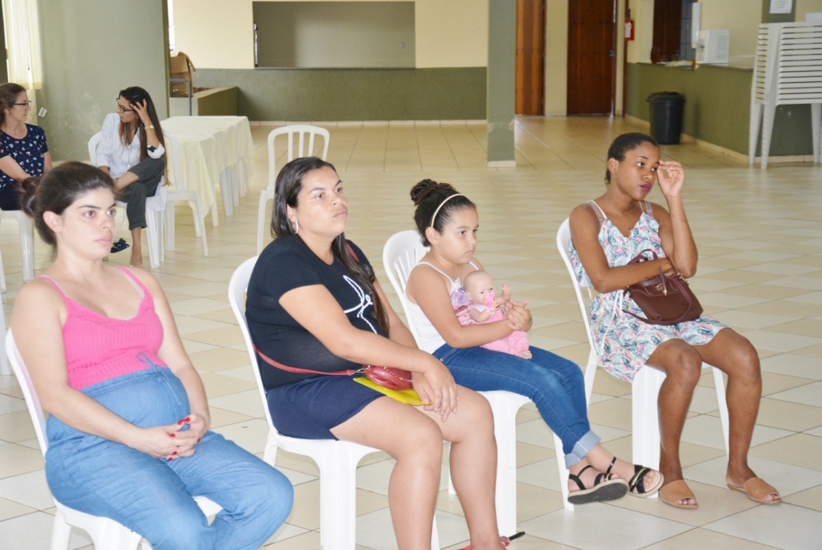 Também presente no encontro, a dentista da rede pública de saúde do município, Drª Renata, conversa com as gestantes sobre os cuidados com a saúde bucal durante o período gestacional e a importância da prevenção e das visitas ao dentista.