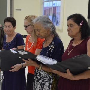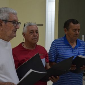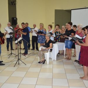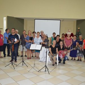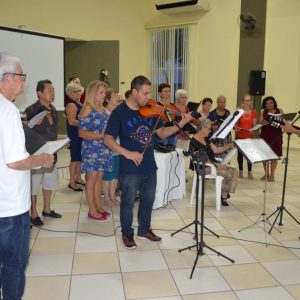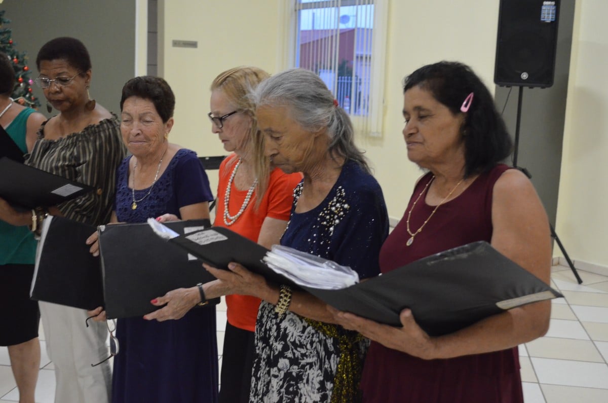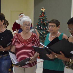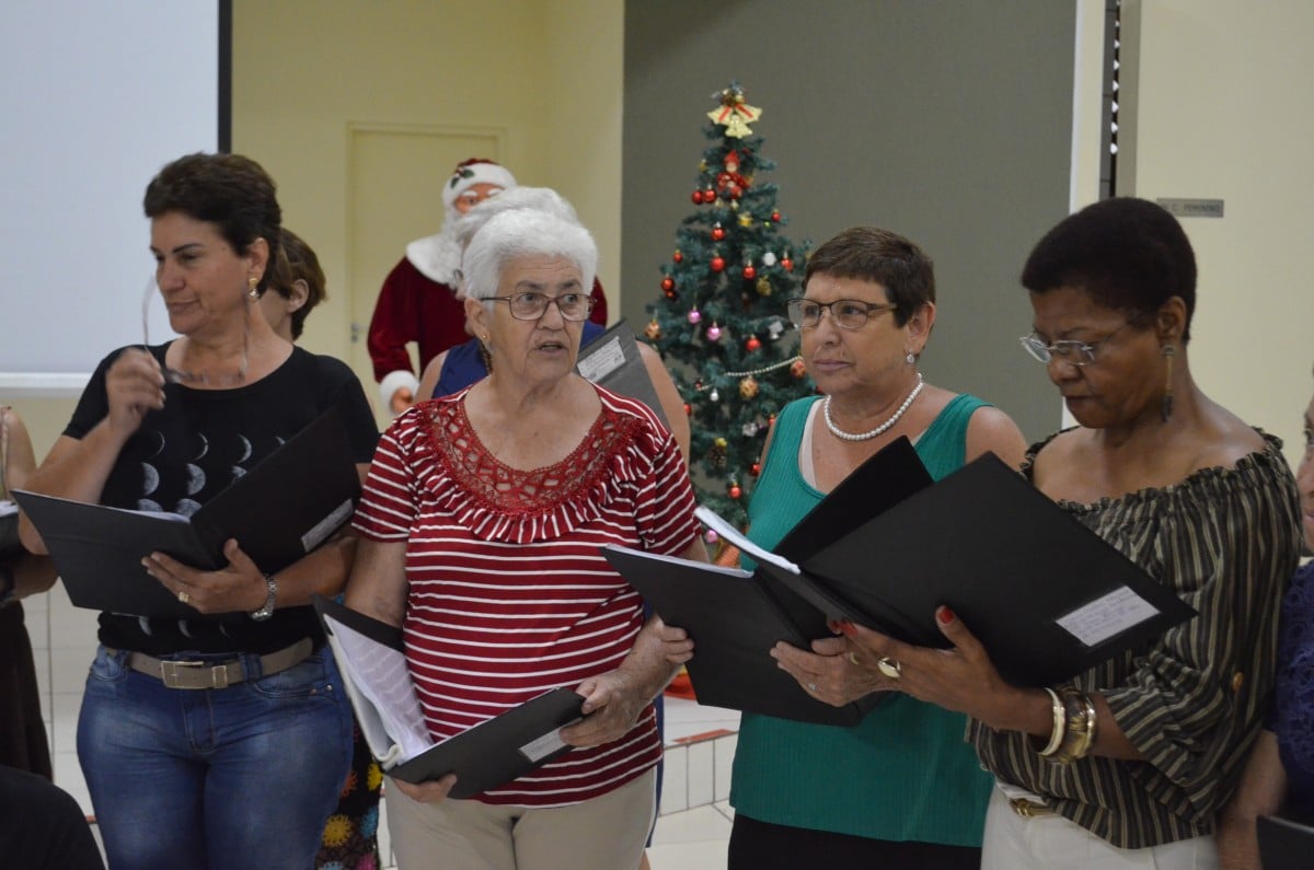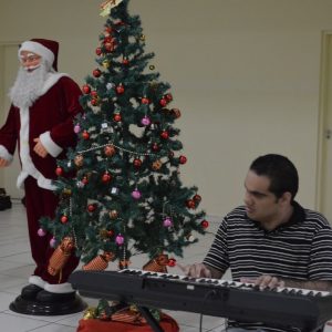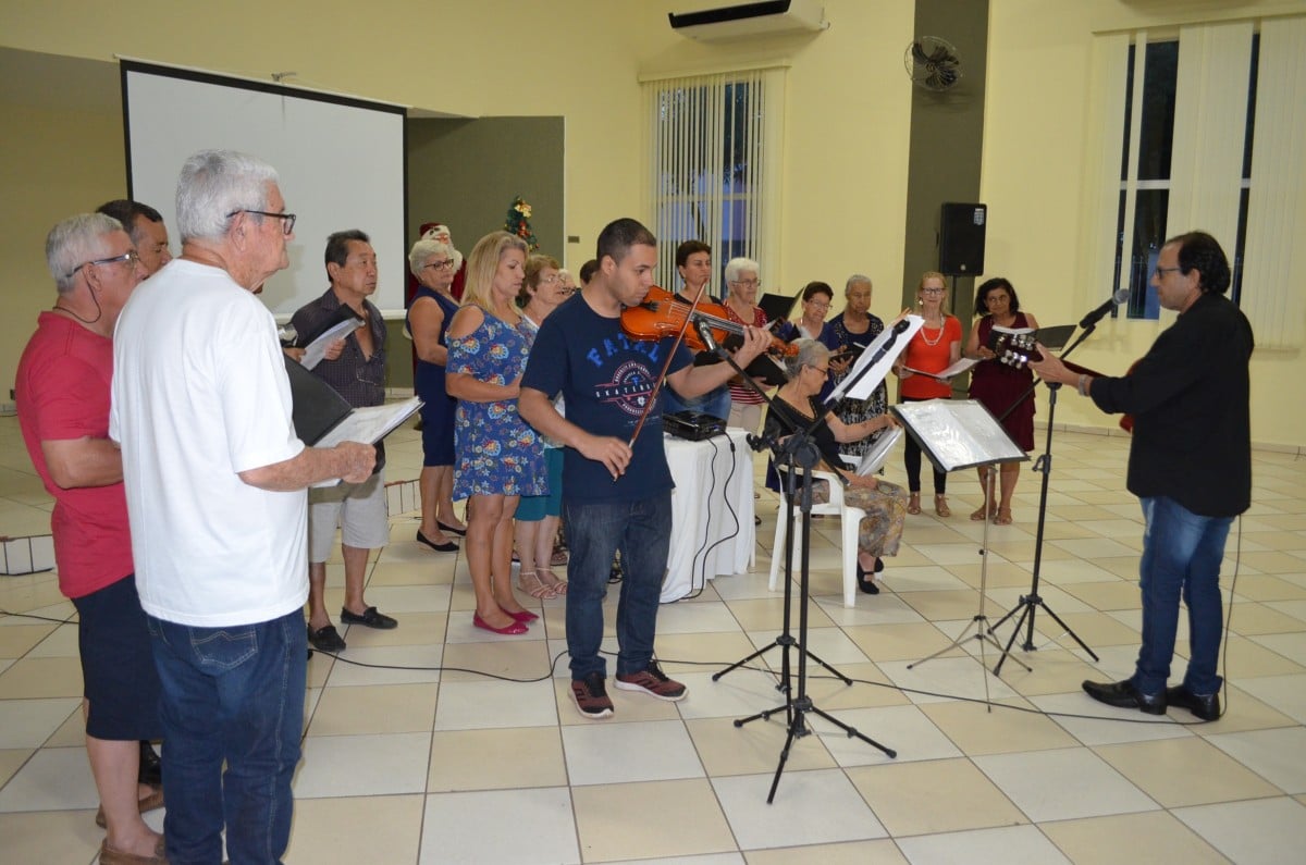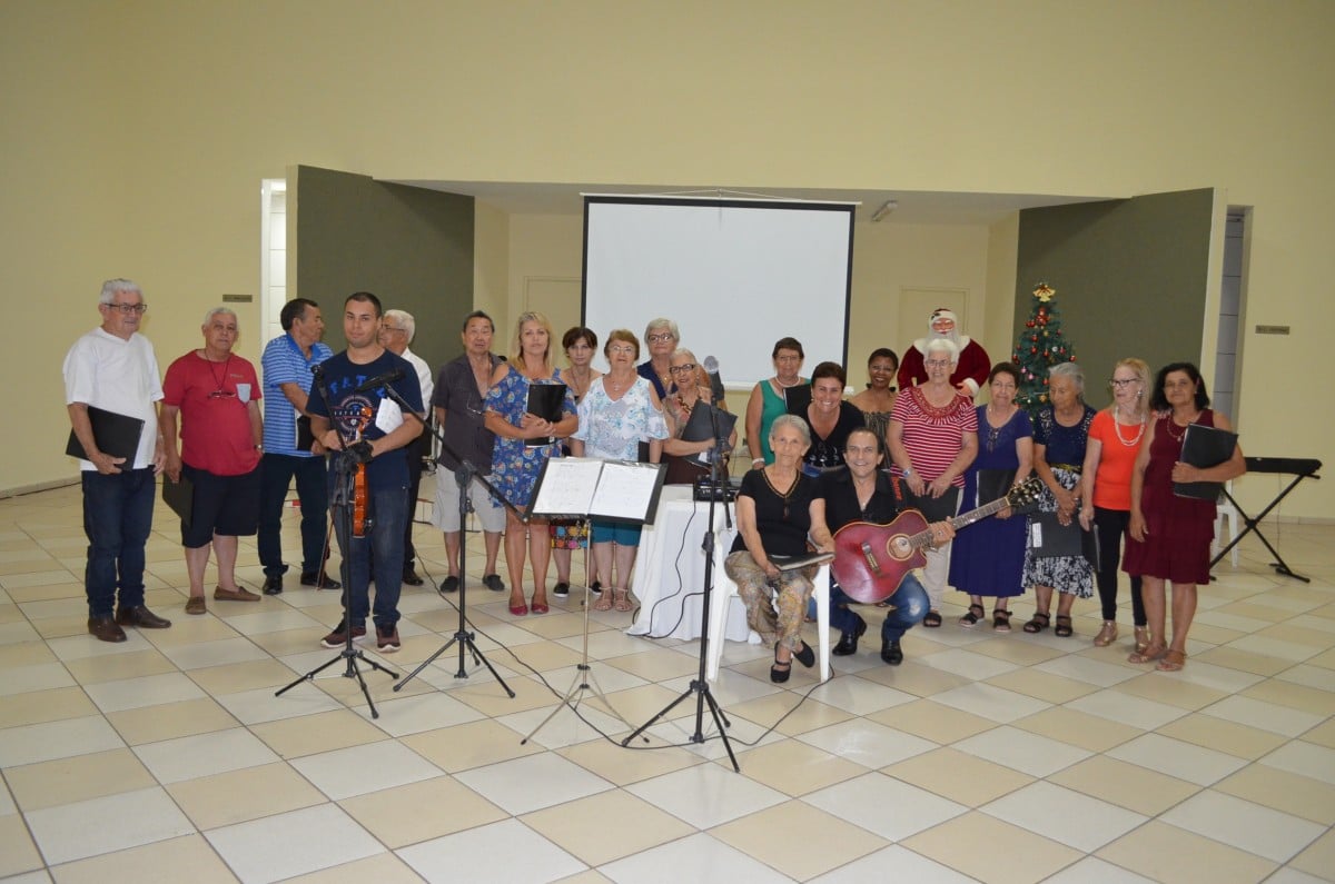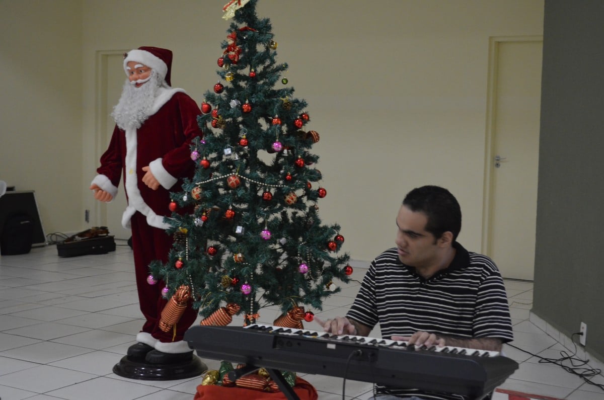 Na ocasião, os presentes puderam conferir dois números musicais. O primeiro deles ficou por conta de Rafael, filho de uma integrante do grupo “Viver Vale a Pena” e deficiente visual, que presenteou a todos com uma bela apresentação de teclado. Em seguida, o Coral da Terceira Idade, acompanhados do professor e músico Júlio Moraes e o violinista Alex, apresentaram um repertório de músicas natalinas.