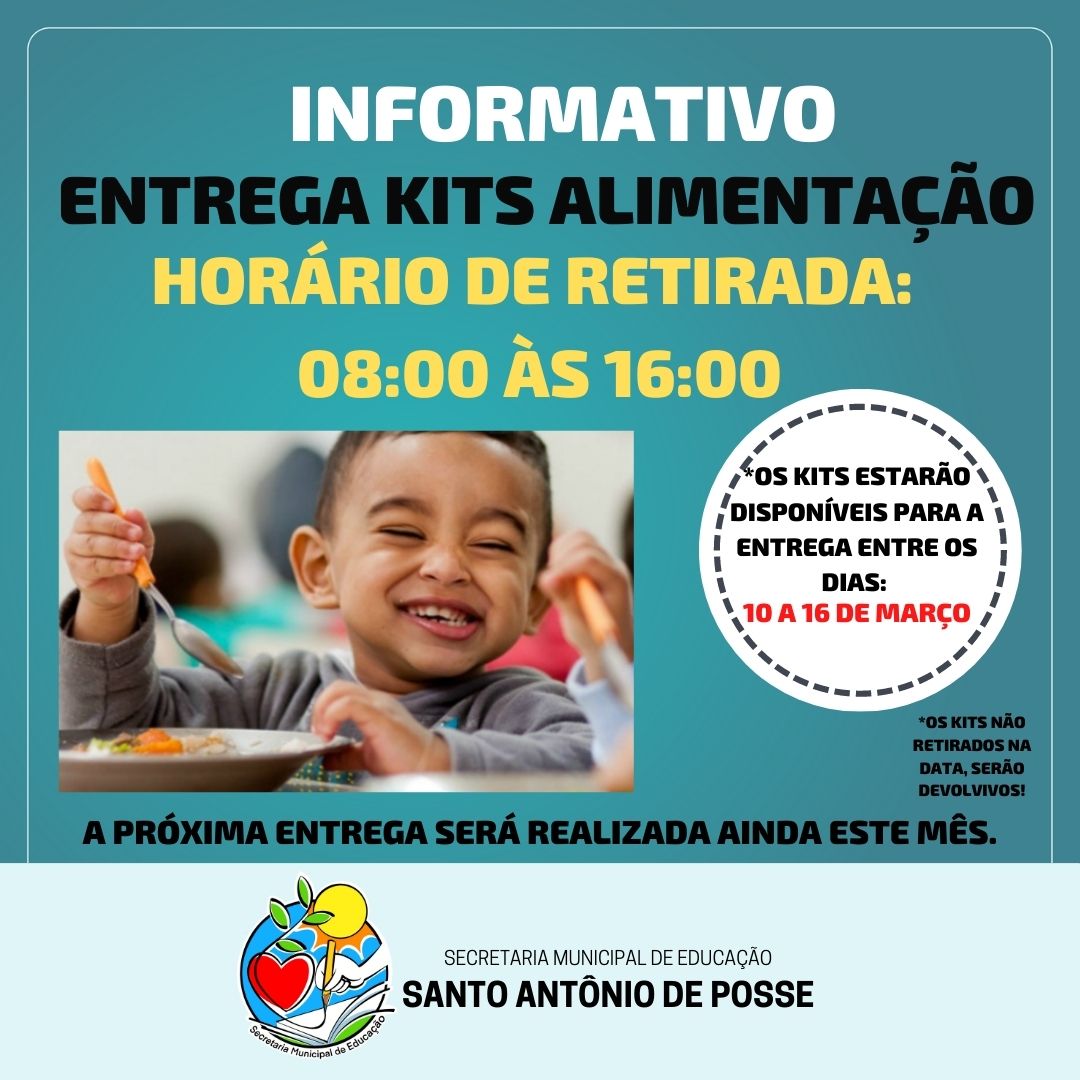 A Secretaria Municipal de Educação de Santo Antônio de Posse iniciará no dia 10 de Março a entrega do primeiro Kit Alimentação Escolar. As entregas ocorrerão entre os dias 10 e 16 deste mês nas Unidades Escolares que o aluno é matriculado.