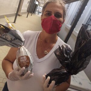 Junto ao Kit desse mês foram entregues ovos de chocolate devido a comemoração da Páscoa