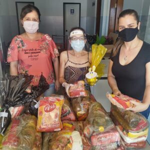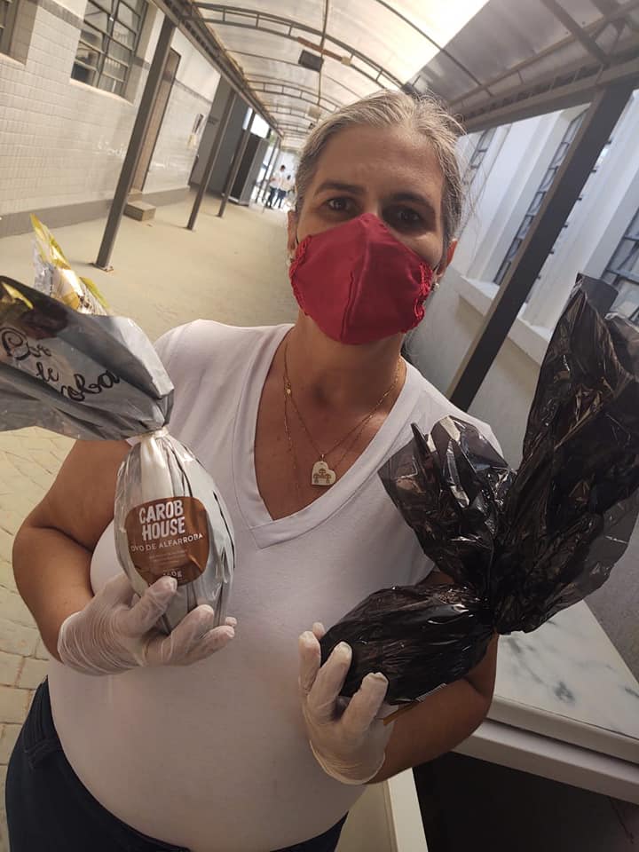 Junto ao Kit foi entregue um pacote com filé de coxa e sobrecoxa de frango, e ovos de chocolate devido a comemoração da Páscoa, respeitando inclusive os alunos que têm intolerância à lactose ou restrições ao açúcar.