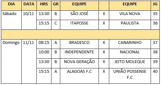 No sábado, dia 3 de outubro, os times União Possense F.C e Canarinho foram os primeiros a entrarem em campo. O placar final favoreceu o time do clube possense que marcou 3 gols, enquanto o seu adversário marcou 1 gol. Em seguida, São José e Nova Geração fizeram um jogo que terminou em goleada, com placar de 0 a 6 para o Nova Geração.