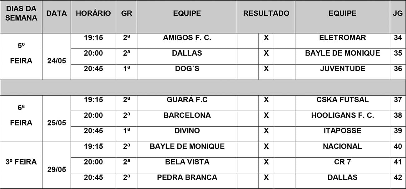 Confira a tabela dos jogos até a próxima edição do Jornal Oficial.