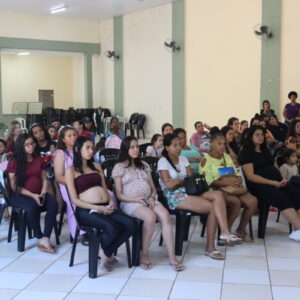 O último encontro do Grupo de Gestantes deste semestre, teve seu encerramento na tarde da última terça-feira, 6 de junho, com uma palestra sobre planejamento familiar e a importância da amamentação. Na ocasião, 21 futuras mamães receberam cada uma um kit enxoval com itens essenciais para os primeiros meses do bebê, tais como roupinhas, toalhinha de banho, fraldas, entre outros itens. A iniciativa é uma oportunidade para trocas de informações e experiências entre as gestantes, além de ser um momento para cuidar da saúde das mamães e dos bebês.