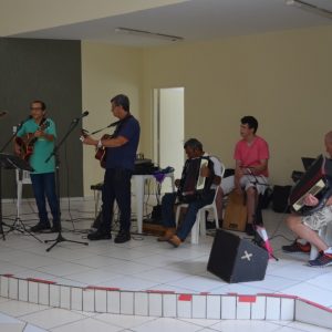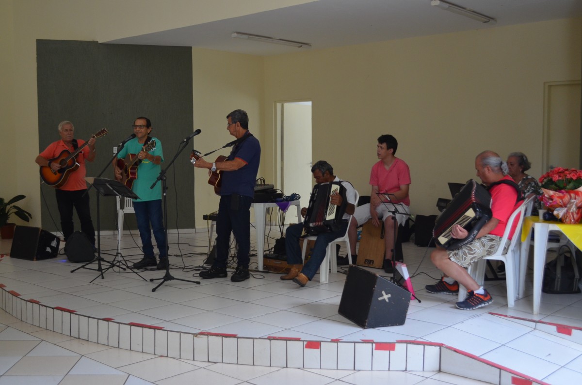 O som ficou por conta do cantor e professor Júlio Moraes que estava acompanhado dos alunos e participantes do grupo “Acolher”. O evento é organizado pelo Fundo Social, em parceria com a Diretoria de Desenvolvimento Social e Cidadania.