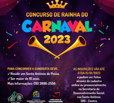 Estão abertas as inscrições para o Concurso de Rainha do Carnaval de 2023.Quer ser coroada rainha do baile de carnaval de Santo Antônio de Posse? Então chegou a sua chance! Para concorrer a candidata ...