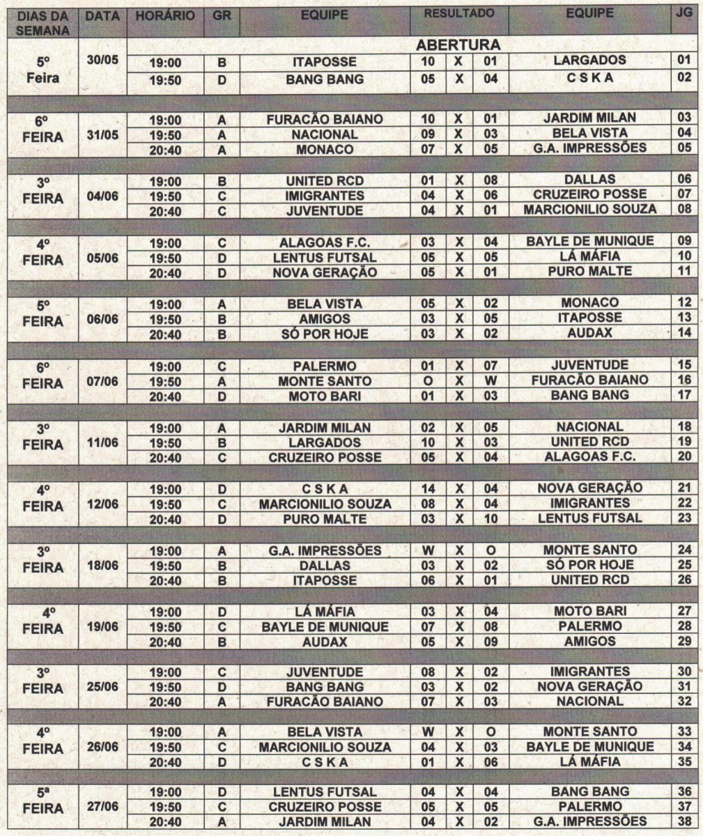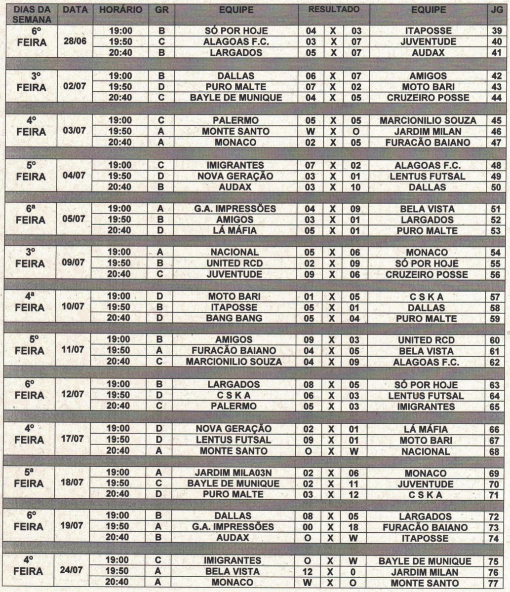Abaixo confira todos os resultados do Campeonato Municipal até o momento: