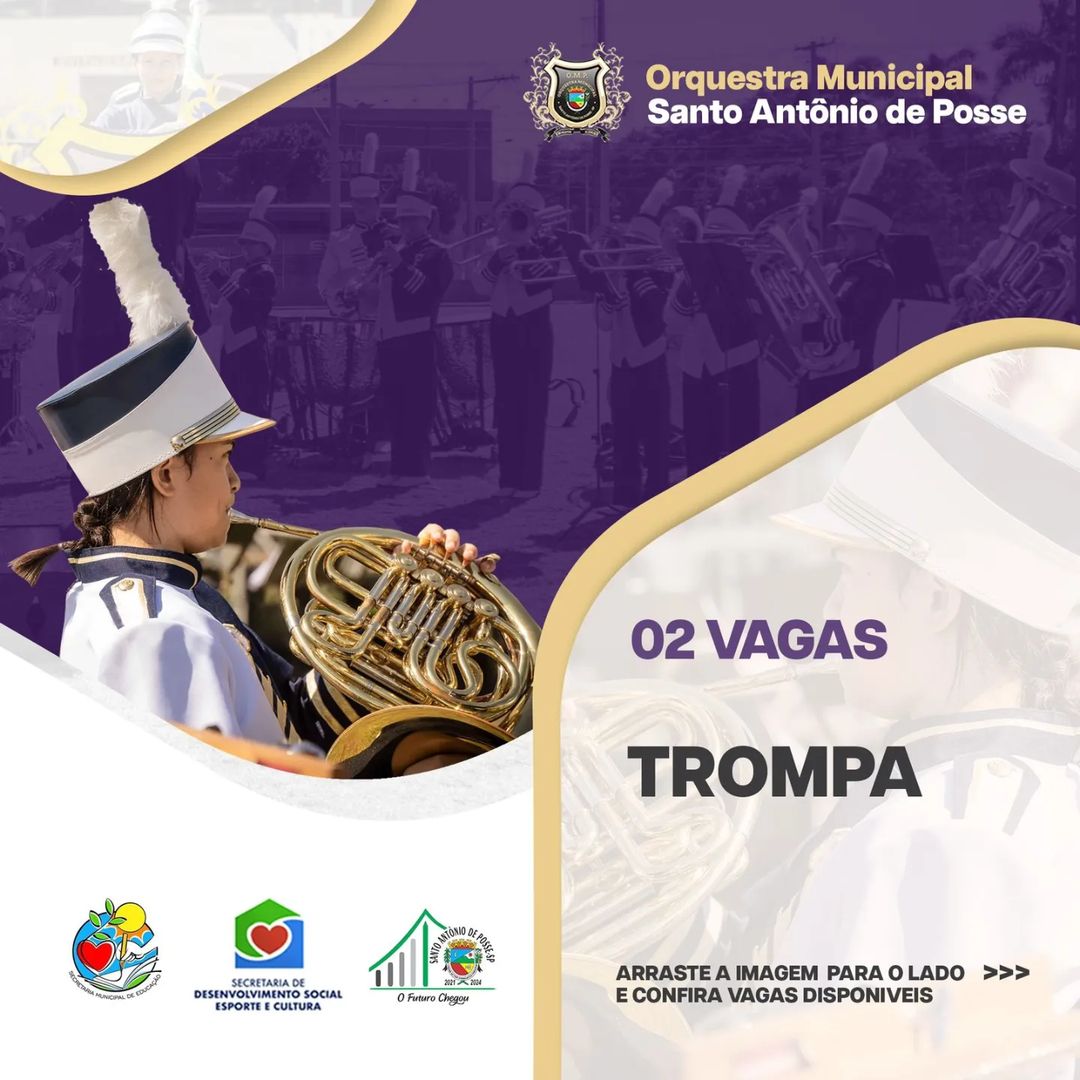 Venha participar da Orquestra Municipal de Metais e Percussão. As aulas são gratuitas, não sendo necessário possuir instrumentos musicais. Podem participar crianças a partir de 9 anos. Para se inscrever, os interessados devem procurar a EMEF Pref. Augusto Coelho (entrada pela quadra de esportes), de segunda a sexta-feira, das 18h às 19h30, ou pelo WhatsApp, por meio do número (19) 99766-4340
