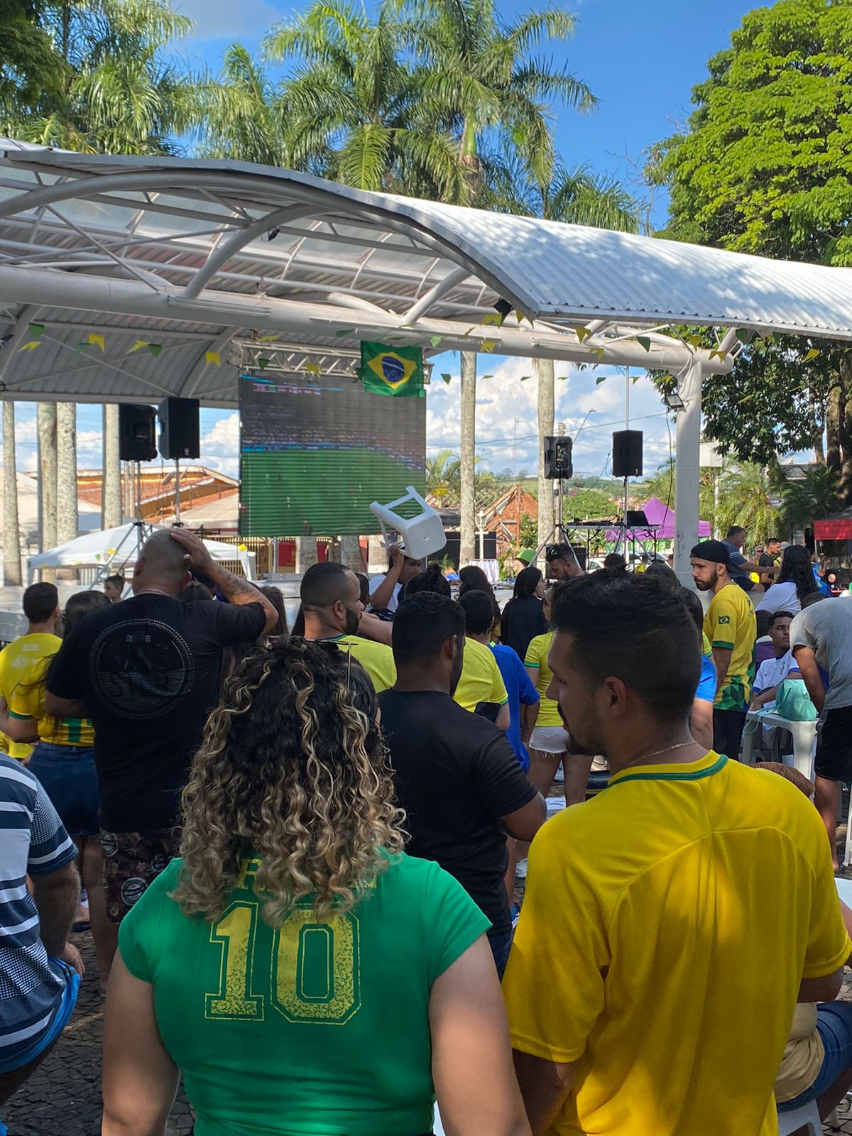 A Copa do Mundo do Catar 2022 começou e a Prefeitura Municipal, por meio da Secretaria de Desenvolvimento Social e do Departamento de Cultura e Turismo, preparou uma programação especial para os dias de jogos da nossa seleção, com Telão de alta definição e a presença das barracas e foodtrucks da Feira da Lua na Praça da Matriz. Nesta sexta-feira, 2, às 16h, a transmissão do jogo entre Brasil e Camarões, válido pela terceira rodada, acontecerá na escola Elisabete Lala Villalva (CIEF), Rua Cynira Marques Cesar, 433 – São Judas Tadeu, devido a instabilidade do tempo, com previsão de chuva no período da tarde.