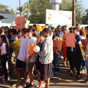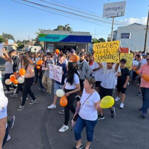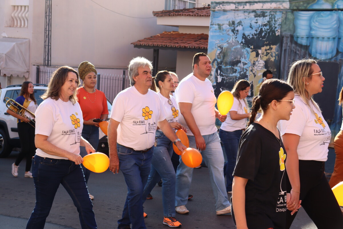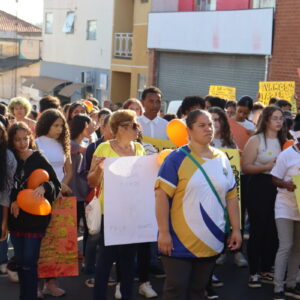 A mobilização começou em frente ao Paço Municipal e estendeu-se pelo centro da cidade, até a Praça Cel. David Batista (Praça da Matriz), com a participação de alunos da rede pública de ensino e da APAE, da terceira idade do Grupo Viver Vale a Pena, educadores e da população em geral.