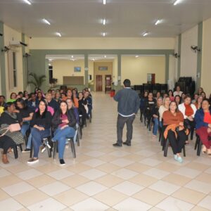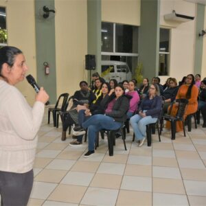 As cuidadoras da rede pública de ensino participaram do 1º Encontro de Cuidadoras, um momento dedicado a essas profissionais que tanto fazem por nossos pequenos. O Psicólogo Fábio Villava tratou de questões importantes que cercam a função de modo prático e sensível, provocando a reflexão sobre as emoções e sentimentos que precisam ser respeitadas para o cuidado com o outro. “A saúde emocional é parte importante da nossa gestão e precisamos cuidar de quem cuida com tanto amor dos nossos alunos e alunas em uma fase tão importante da vida”, enfatizou a secretária de Educação Claudia Aparecida Pinho Lalla.