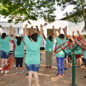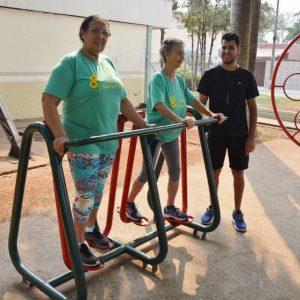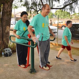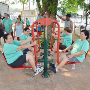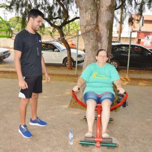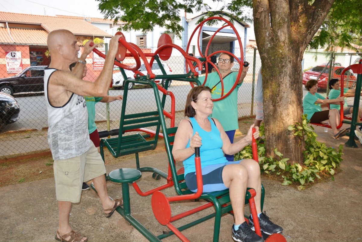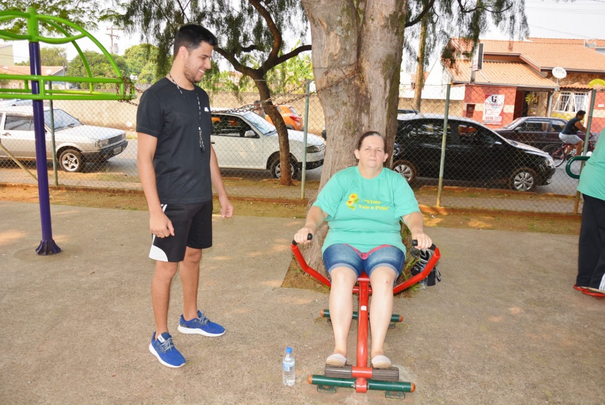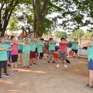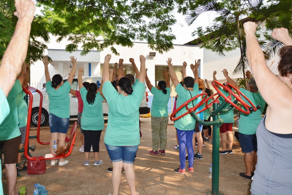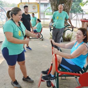 Após a palestra, a professora de Educação Física, Michele Almeida, juntamente do estagiário de Departamento de Esportes, Renan Silva de Matos, deram início a Ginástica Ritmada, seguida do Vôlei Adaptado e Musculação. Nesta última atividade, os idosos aprenderam o uso correto dos aparelhos disponíveis na Academia ao Ar Livre. Para finalizar a programação do dia, todos participaram de um alongamento.