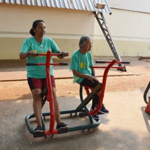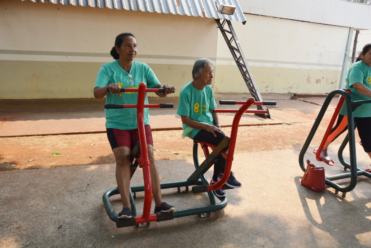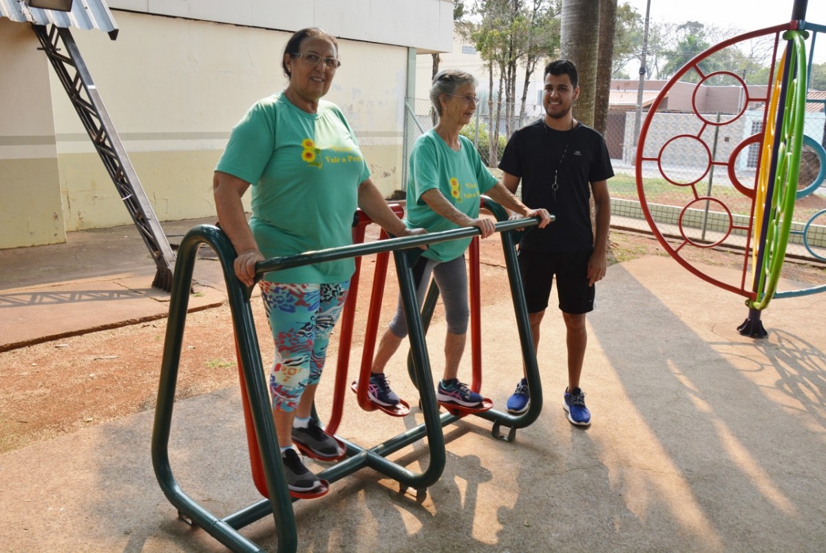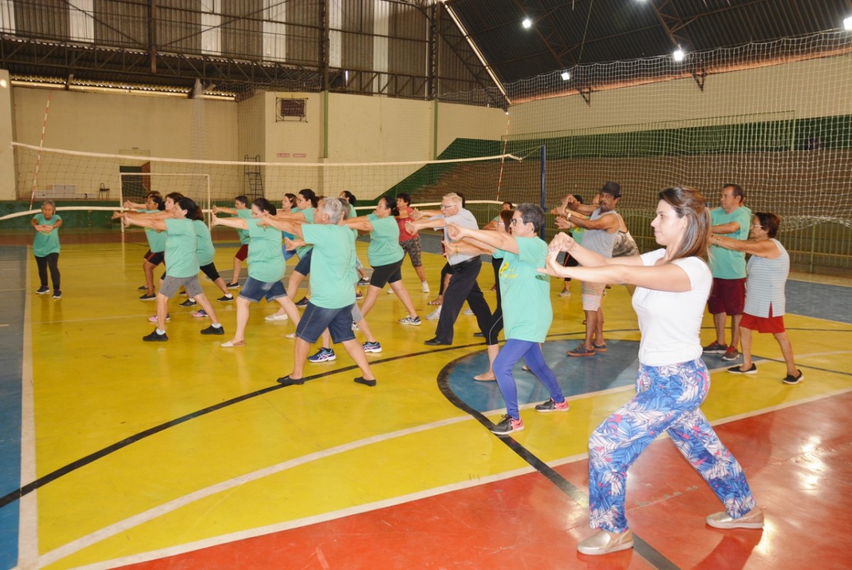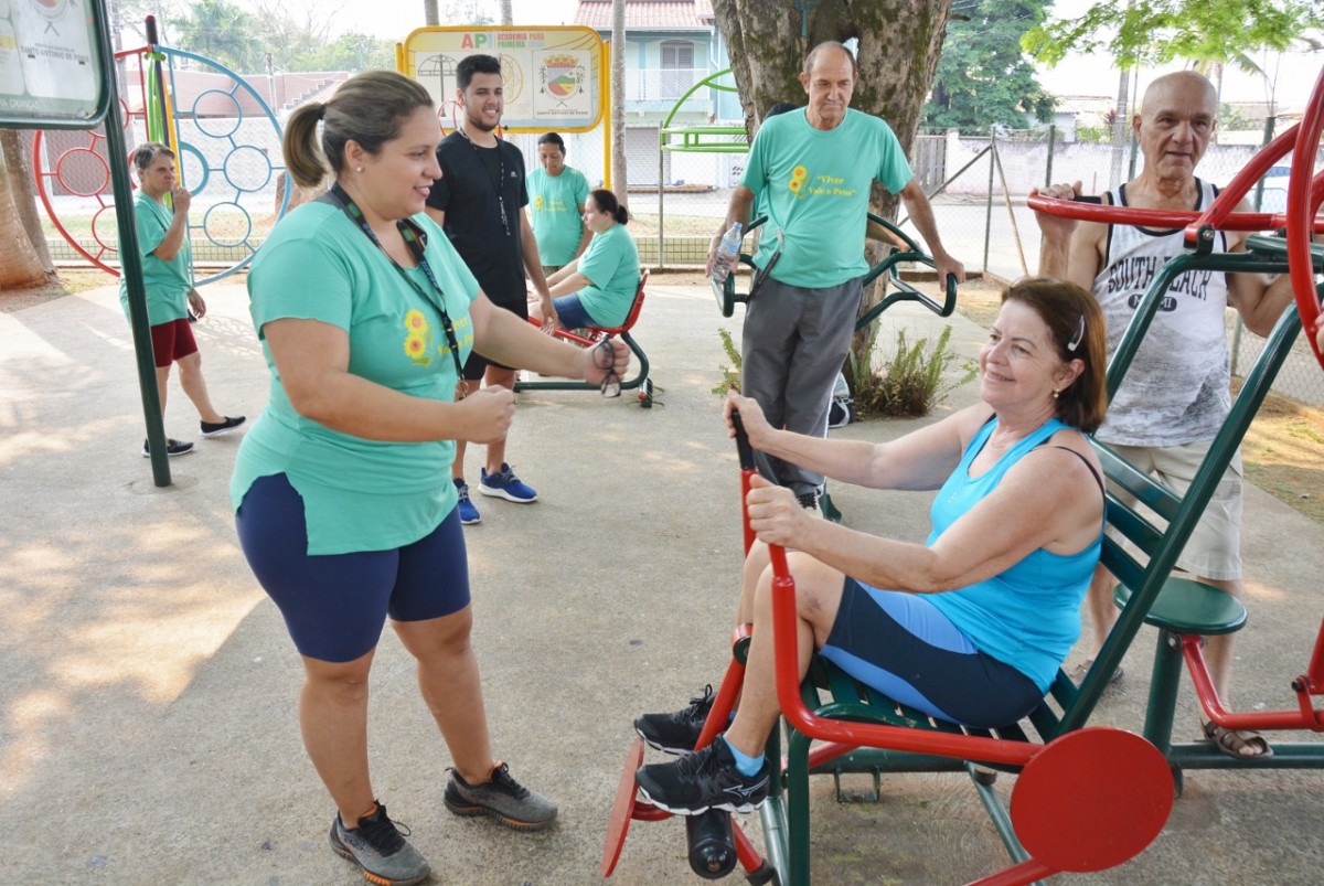 Após a palestra, a professora de Educação Física, Michele Almeida, juntamente do estagiário de Departamento de Esportes, Renan Silva de Matos, deram início a Ginástica Ritmada, seguida do Vôlei Adaptado e Musculação. Nesta última atividade, os idosos aprenderam o uso correto dos aparelhos disponíveis na Academia ao Ar Livre. Para finalizar a programação do dia, todos participaram de um alongamento.