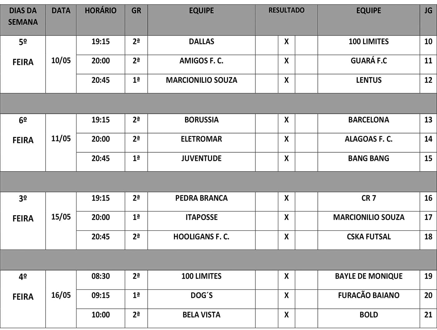 Acompanhe abaixo a tabela dos jogos até a próxima edição do Jornal Oficial.