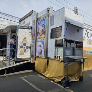 Estruturado em um caminhão, o cinema móvel visa ampliar o acesso aos equipamentos culturais. Ao chegar no local de destino, as laterais do caminhão se expandem, transformando-o em uma verdadeira sala de cinema, com telão, climatização e poltronas para acomodar até 91 pessoas por sessão, além de pipoqueira, dispenser para refrigerante e banheiros.