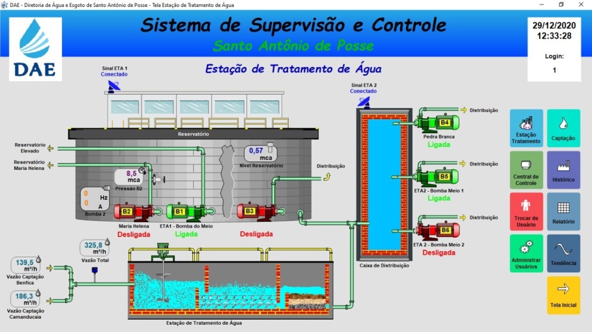 Todas estas ações, com destaque ao sistema supervisório, colocaram o DAE a frente, dando início a novos tempos, modernizando o processo e facilitando a operação. Agora o operador em tempo real tem acesso a importantes informações como status do equipamento, nível do reservatório, vazão, além de aumentar ou diminuir a demanda de água remotamente, conforme a necessidade. Com isso estes indicadores auxiliam na tomada de decisão, bem como garantem um melhor serviço.